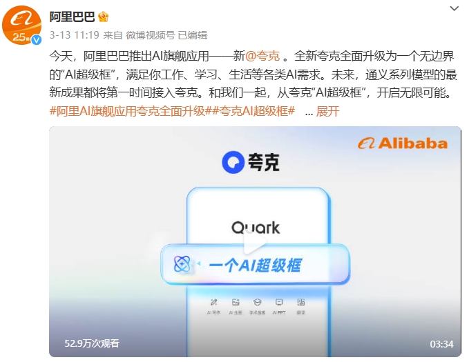 前段时间,腾讯为了推广自家产品,下了一剂猛药,花费高达 2.7 亿的投流费用,成功助力腾讯元宝登顶 App Store 的免费下载榜。而就在 3 月 13 日,阿里巴巴也不甘示弱,宣布旗下的夸克推出了 “AI 超级框”。