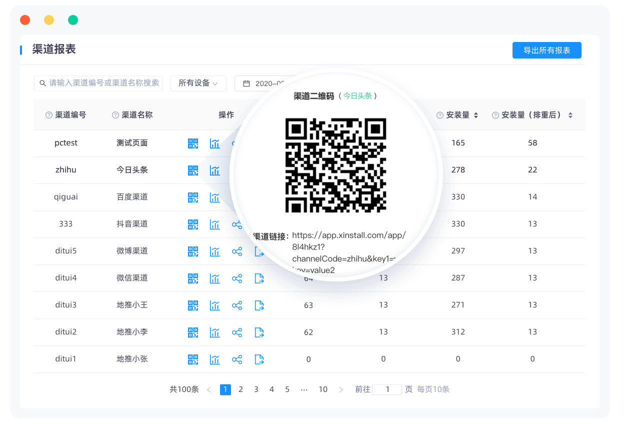 怎么做地推效果统计? 标准流程是:1. 在 Xinstall 后台批量生成带参数的渠道二维码;2. 将二维码分发给对应的地推人员;3. 用户扫码安装 App,SDK 自动还原参数并上报业绩;4. 运营人员在后台实时看板查阅每位员工的安装、注册及后链路转化数据。