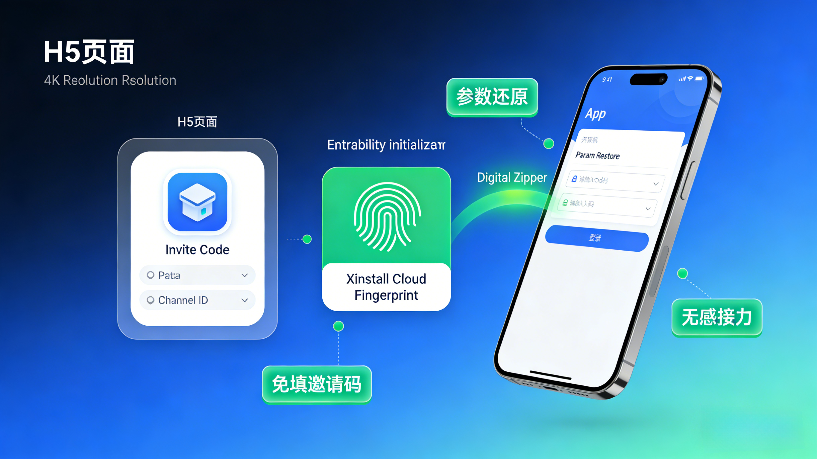 | 交互阻力 | 需手动填写国家/区域代码 | 免填邀请码 自动绑定 | 落地 App智能传参安装 |