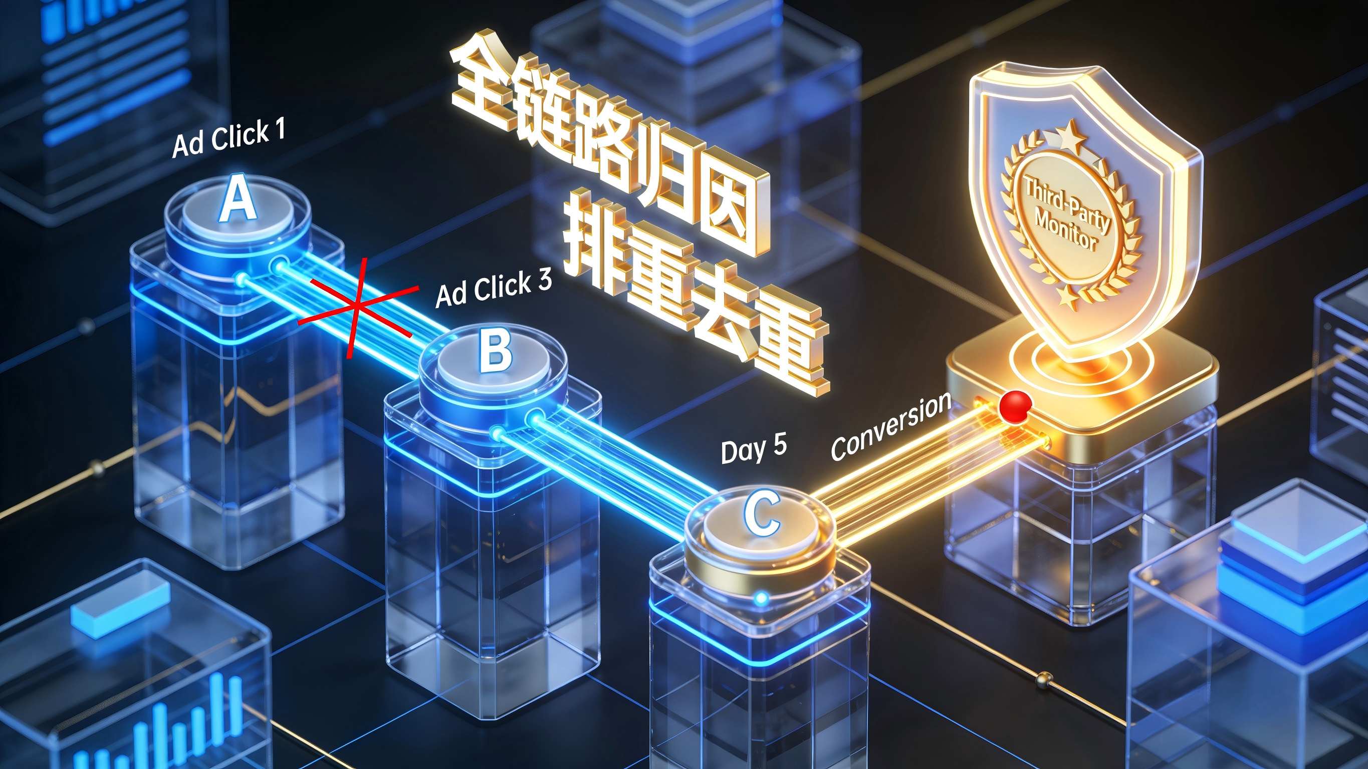 在进行跨渠道预算分配、财务对账与内部考核复盘时,必须坚定地以接入了严格 Last-Click 去重机制的第三方监测数据为最终法理标准。因为只有第三方具备全局视角。媒体自带的数据存在不可避免的自归因粉饰,它仅适合作为优化师在单一平台内部调整定向标签或创意素材时的趋势参考。