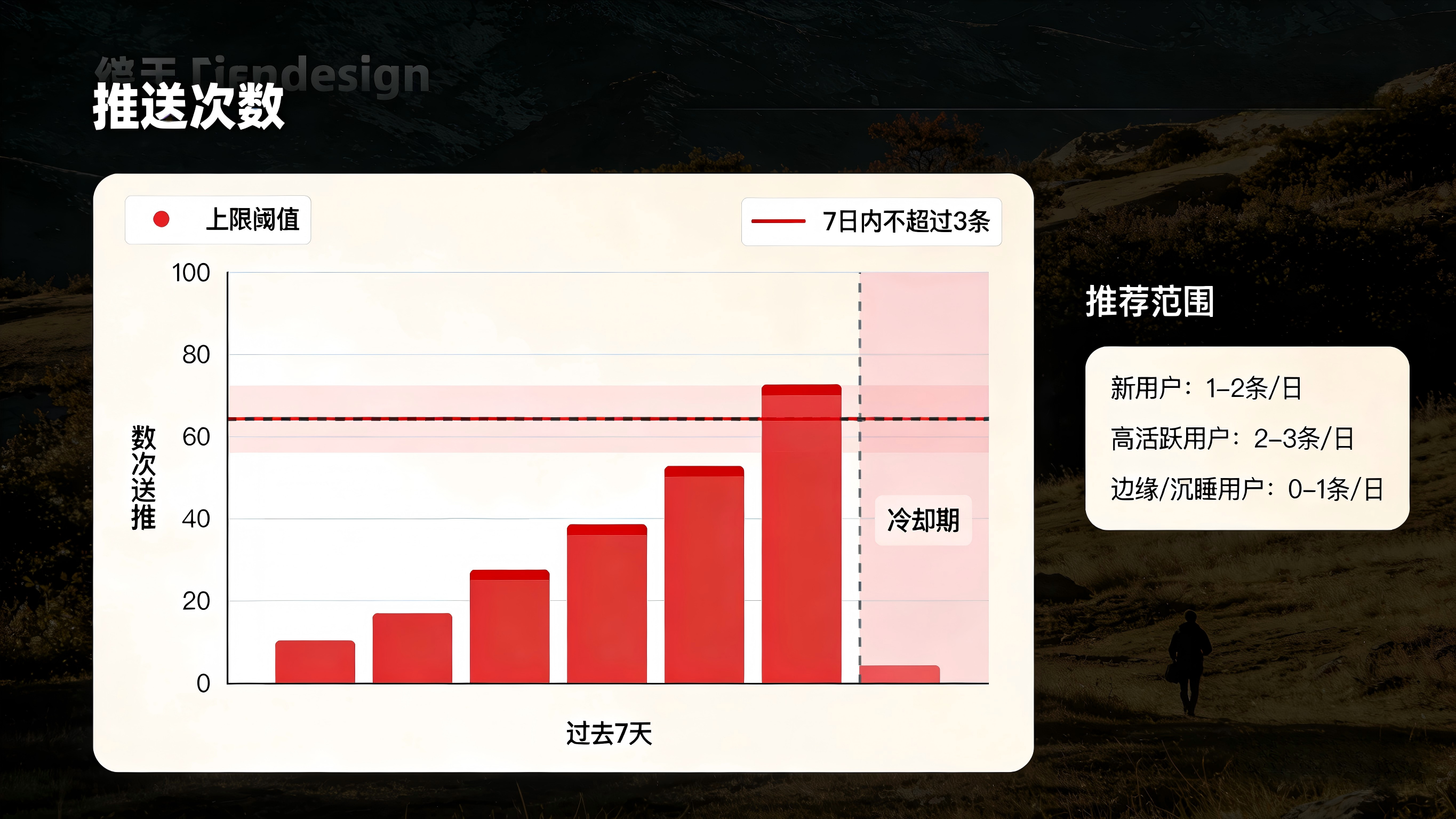 更精细的做法是按用户级别记录一段时间窗口内“已发次数”,当过去 7 天内送达次数超过 7 条时,自动把后续非高优先级推送放入冷却队列。