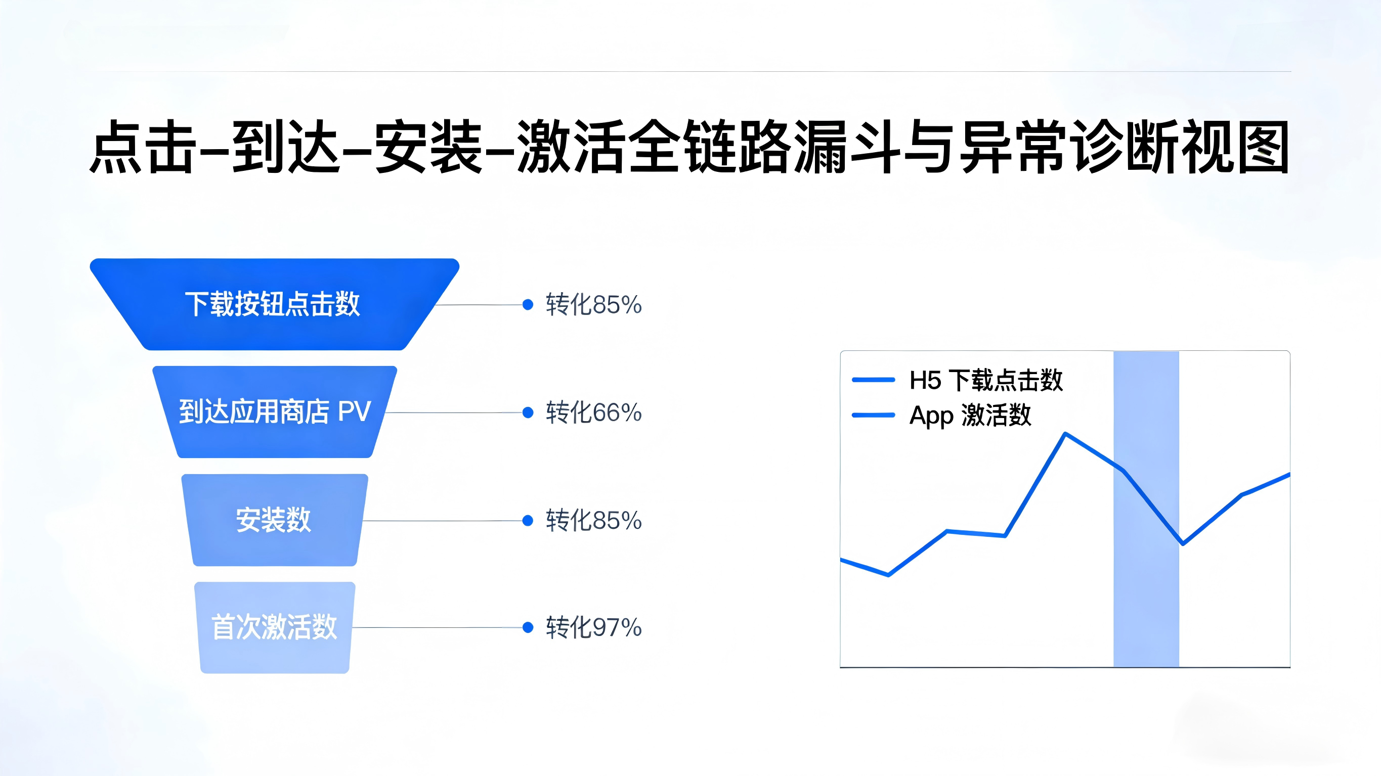 当 H5 端的点击数据和 App 端的安装/激活事件都打通之后,就可以在统一报表中查看完整漏斗:每个渠道的页面访问量、下载按钮点击数、到达商店数、安装数以及首次激活数,一目了然。[web:81][web:86]在此基础上,团队可以快速揪出“高点击低安装”的问题渠道,或者识别“量不算最大但激活质量极好”的优质来源,为后续预算倾斜提供依据。
