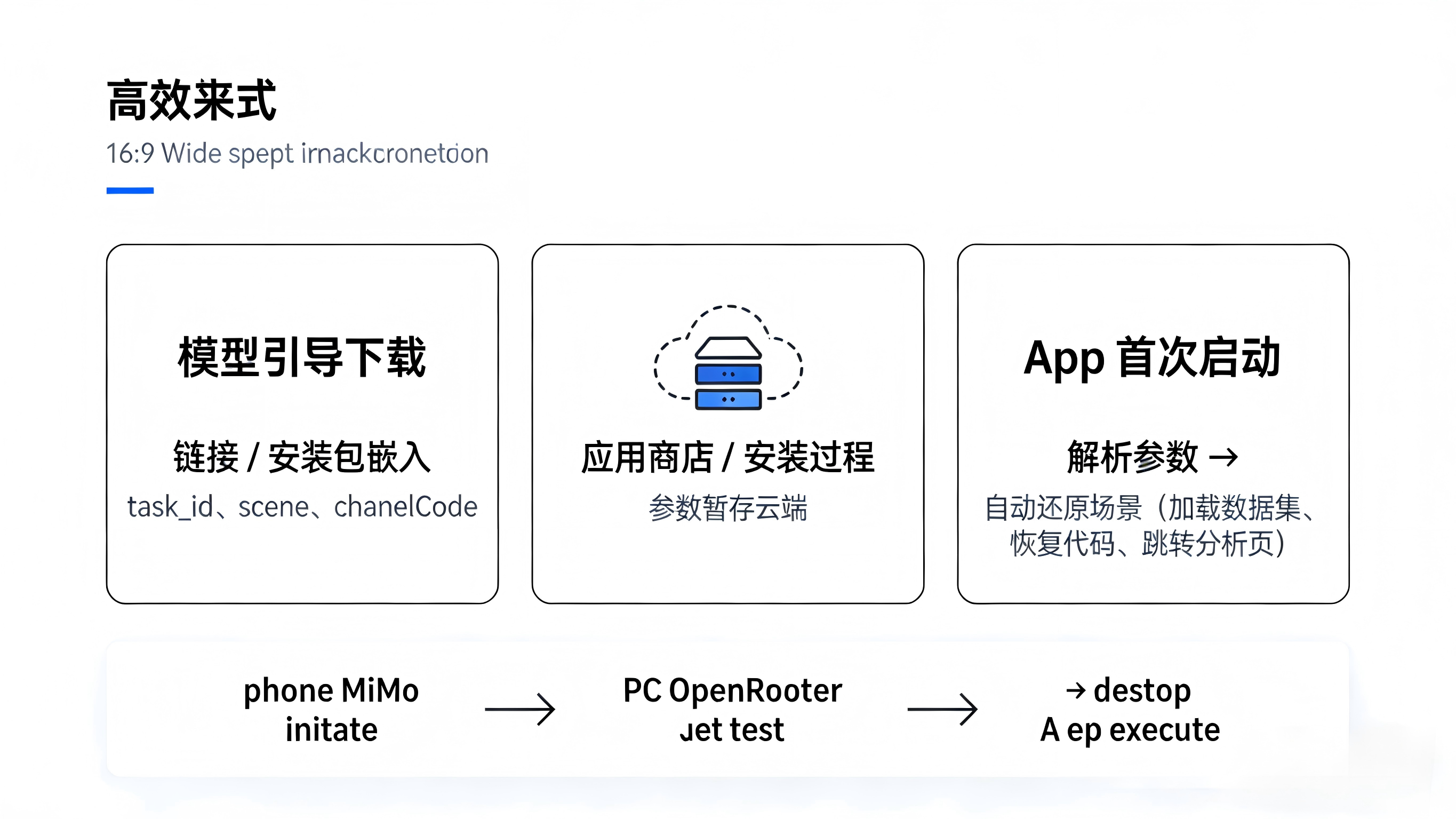 终端模型的任务往往跨设备:用户在手机 MiMo 上发起,在 PC OpenRouter 上测试,最后下载桌面 App 执行。如果安装过程丢失上下文,用户体验就断裂了。