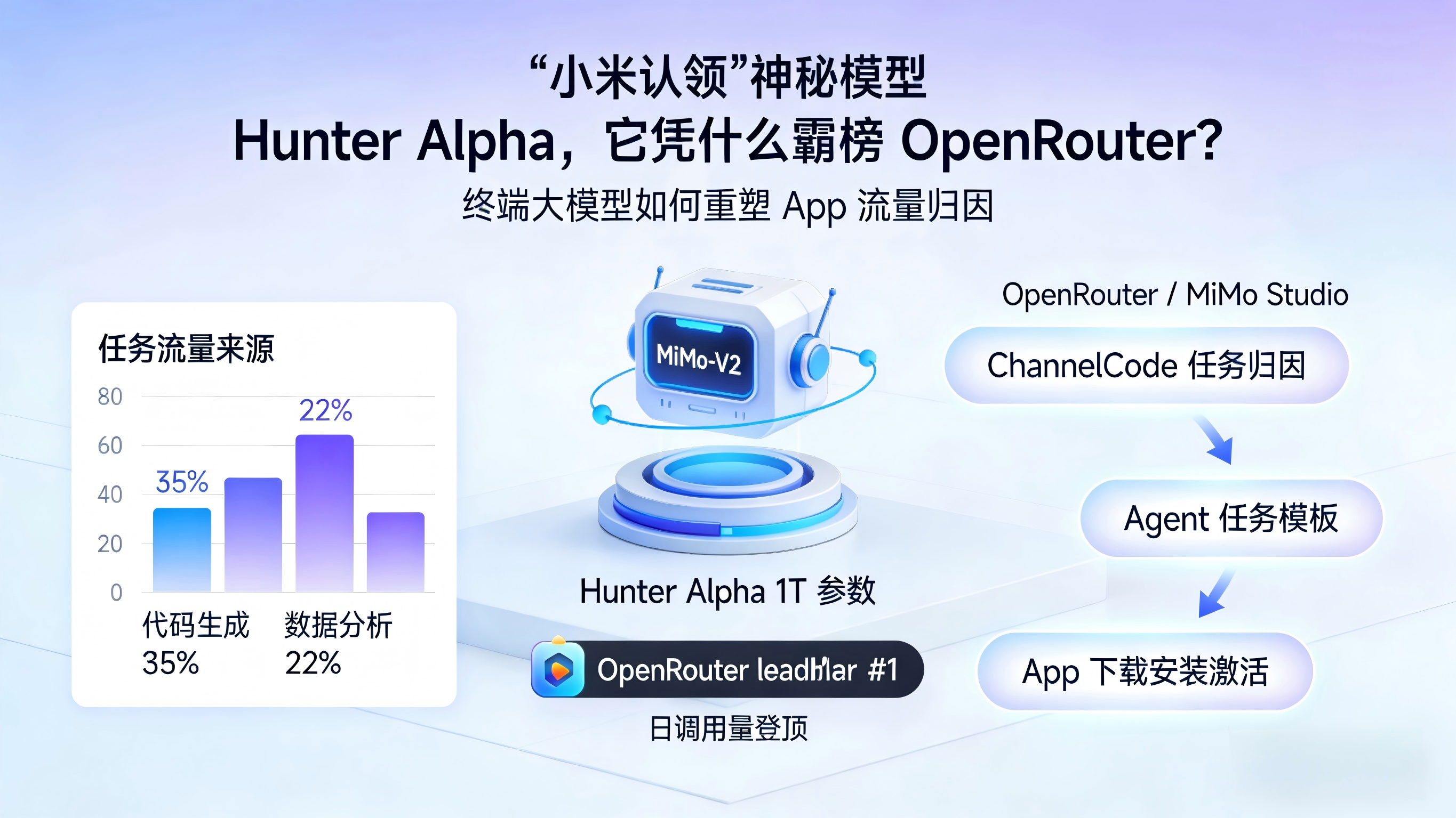 小米 MiMo-V2 系列大模型团队突然认领了 OpenRouter 榜单上的“神秘模型” Hunter Alpha,这款 1 万亿参数、百万 token 上下文的超大模型上线几天就累计处理 1600 亿 token、日调用量登顶。对于开发者来说,这是免费试用顶尖 Agent 能力的窗口;但对 App 和 SaaS 团队而言,这更像一个信号:终端厂商的自研大模型,将把“任务流量”从云端推向设备端和多平台生态,你准备好看清这些流量的来源和价值了吗?