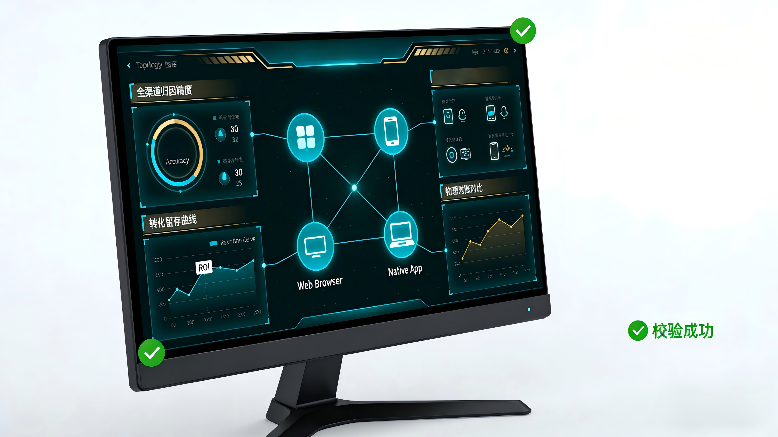 Web、App、小程序的行为常断链。Web 用户点击下载 App 后,GA4 追踪中断,导致“前端热闹、后端冷清”。解决方案是用全渠道 SDK(如 Xinstall 全渠道归因统计)统一 user_id,在 App 冷启动时回溯 Web 行为,实现端到端的路径重建。