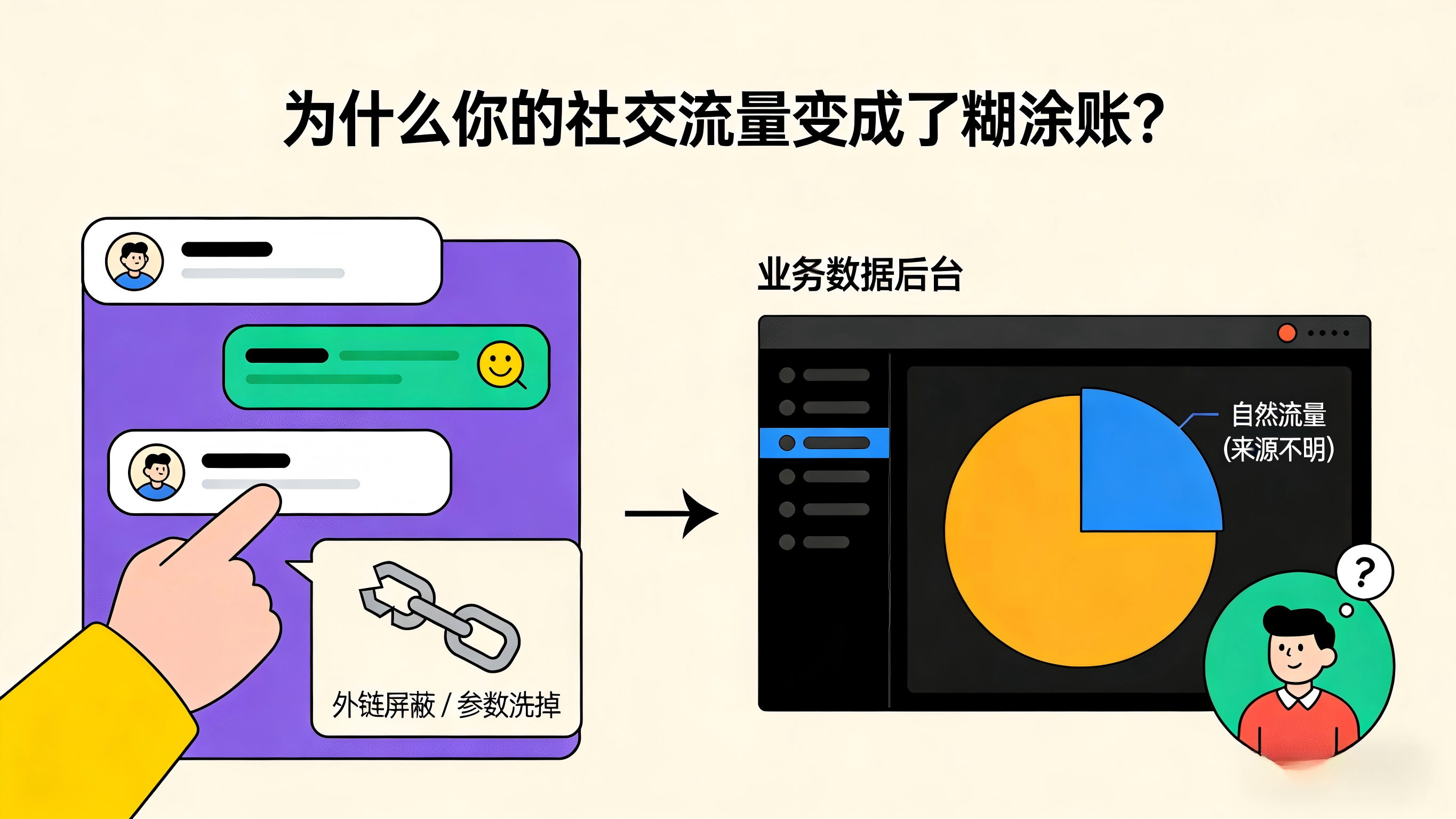 其结果就是,那些真正被社媒内容打动并千辛万苦下载了 App 的用户,在业务后台全都被归类成了不明来源的“自然流量”,导致运营团队错估了社交推广的真实 ROI。