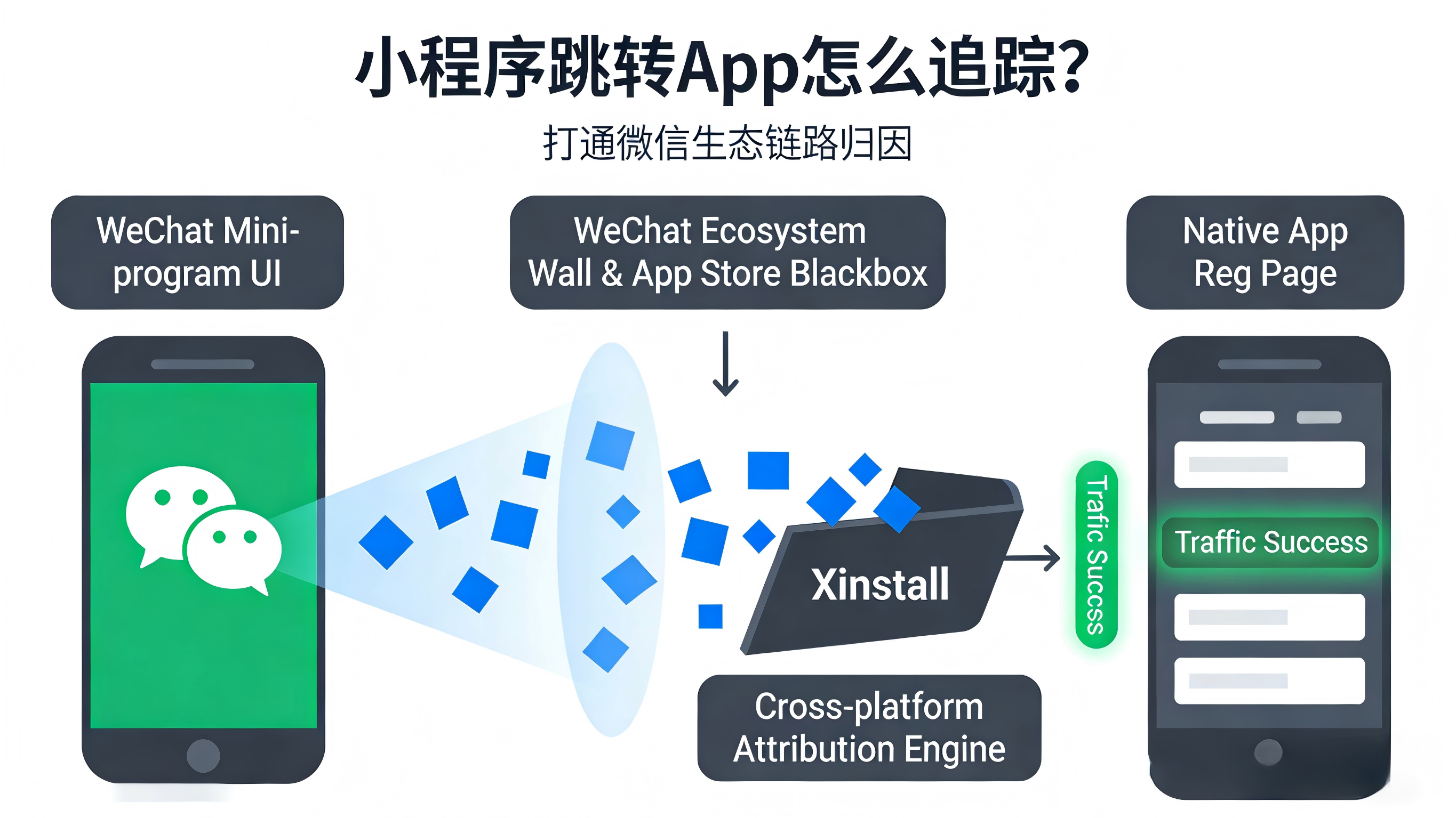 小程序跳转App统计怎么追踪?在跨平台获客的战略中,将微信小程序的庞大公域与私域流量导向自有 App,是许多产品经理和运营负责人的核心诉求。然而,由于微信生态的封闭性,常规的链接跳转往往会在跨越应用环境时丢失渠道参数,导致后端只能看到新增,却算不清来源。要真正追踪这部分转化,专业的做法是利用动态 URL Scheme(或微信开放标签),并结合延迟深度链接(Deferred Deep Linking)与设备指纹技术,确保用户在“点击-跳转/下载-激活 App”的全过程身份参数能够接力传递。本文将深入剖析小程序引流 App 过程中的数据断层痛点,详细拆解跨端参数传递的底层技术链路,并结合真实诊断案例,演示如何运用第三方工具(如 Xinstall)与物理对账逻辑,精准找回丢失的转化数据。