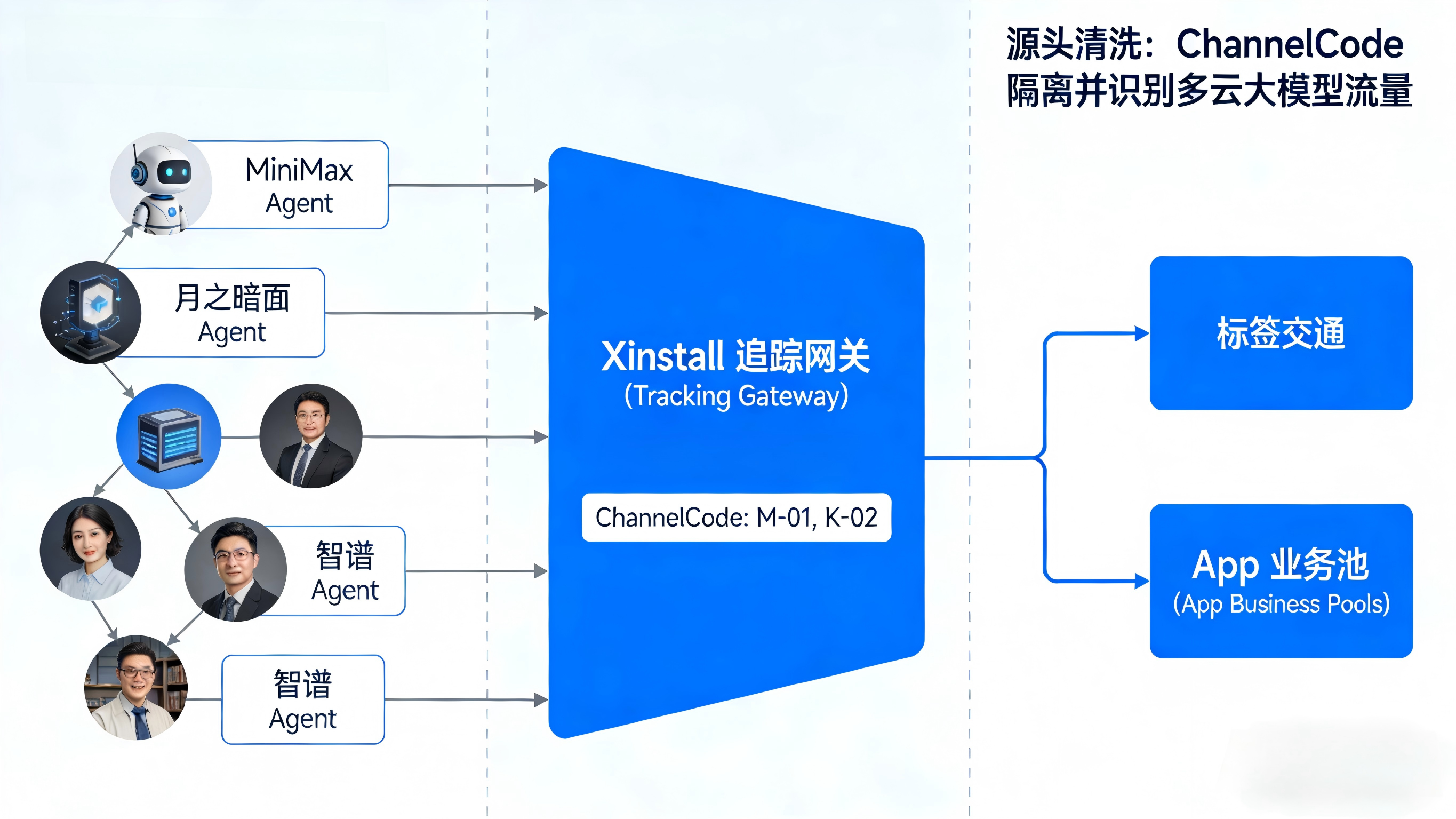 在向大模型或 Agent 平台注册 API 服务或提供落地页链接时,App 团队应该主动在回调 URL 或拉起链接中前置设定好自定义参数结构(如拼接专属的 ChannelCode)。只要智能体按规范发起请求,参数自然会被带入。