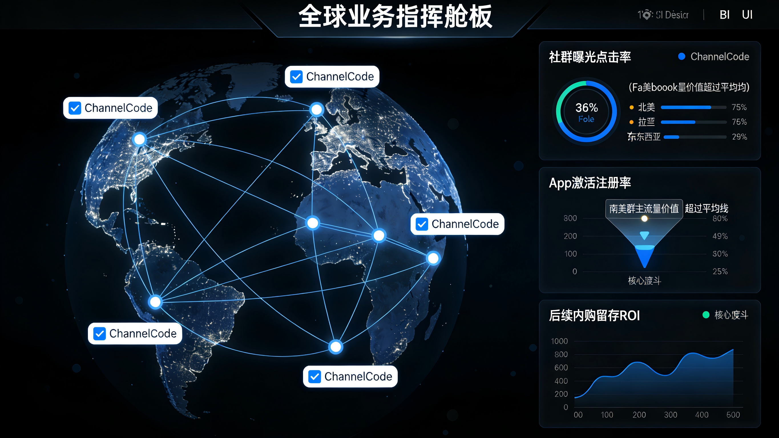 当裂变活动铺开后,流量可能来自 Facebook 小组、Telegram 社区或网红的私域粉丝群。团队可以为不同的子社群或关键 KOL 分配专属的渠道编号 ChannelCode,把这批来自“暗网”的流量同样纳入全渠道统计看板中。通过这种精细化的标识,能够看清到底是哪个国家的哪个私域群主带来了最高质量的活跃用户。