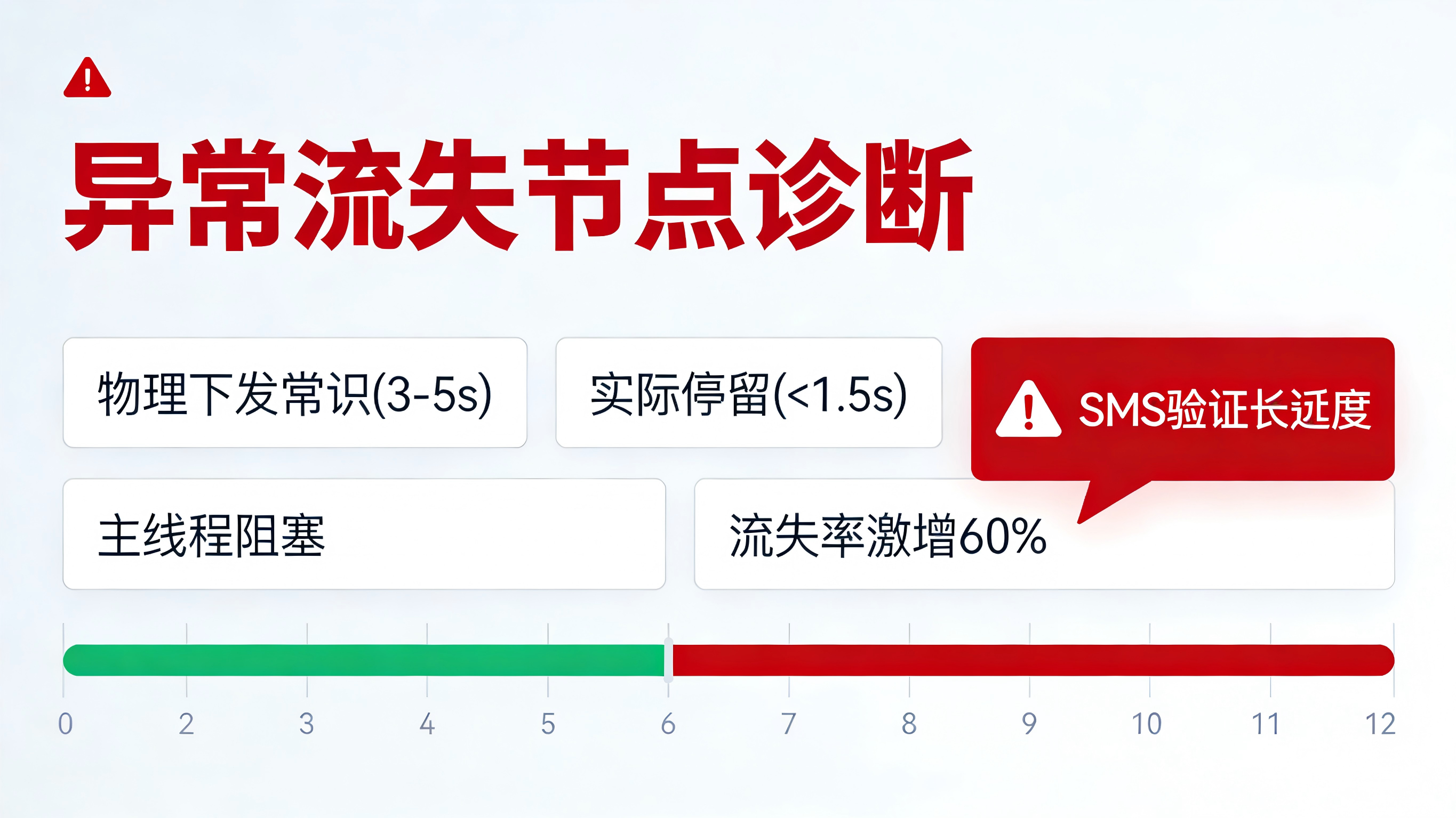 然而,当团队拉出这 60% 流失用户的底层路径日志时,发现了一个极其诡异的数据特征:这批流失用户在“验证码等待页面”的平均停留时长(Duration)竟然普遍少于 1.5 秒。也就是说,用户在点击获取后,根本没有给短信下发留出必要的物理传输时间,就在 1.5 秒内直接杀掉了 App 进程或强行返回了上一级页面。