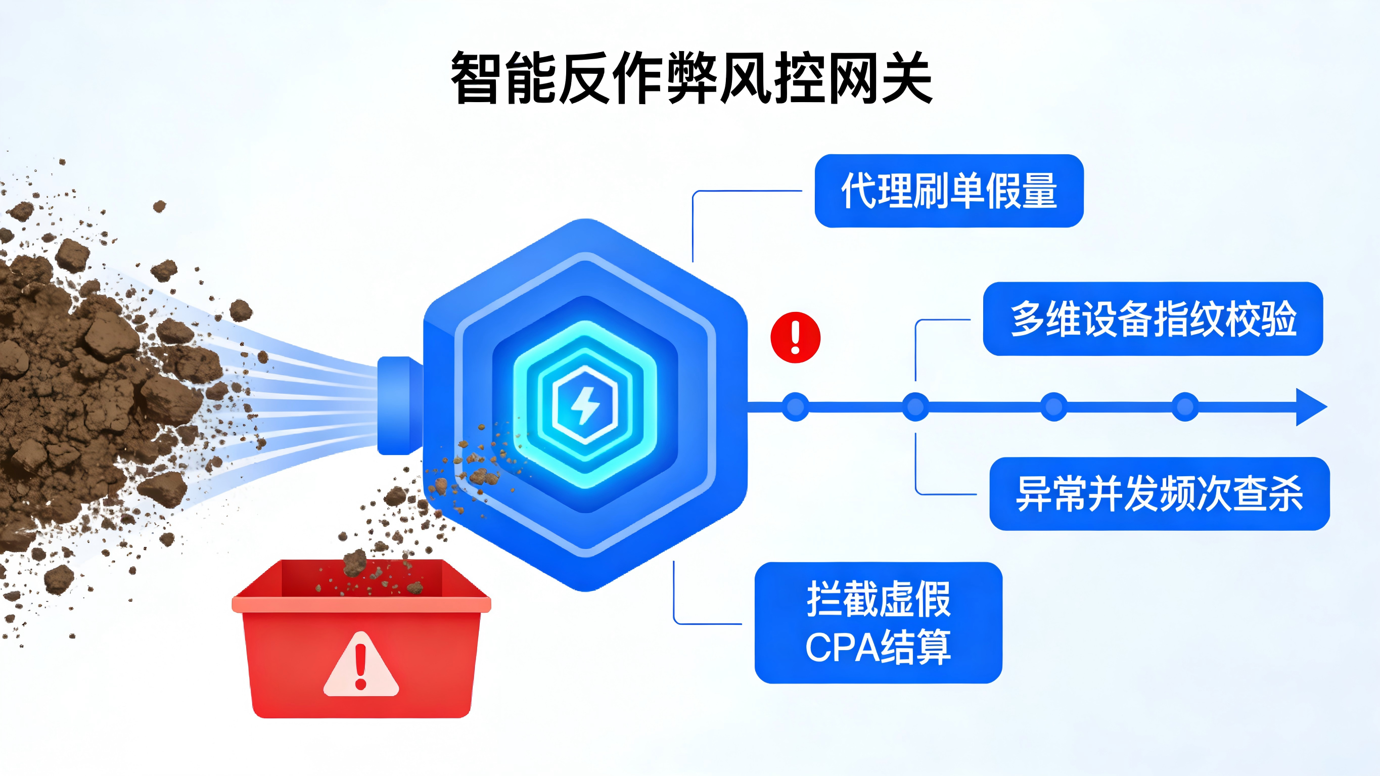 这种底层的流量净化机制,能直接砍掉那些试图骗取 CPA 推广费的虚假流量,从源头保卫企业的资金链。