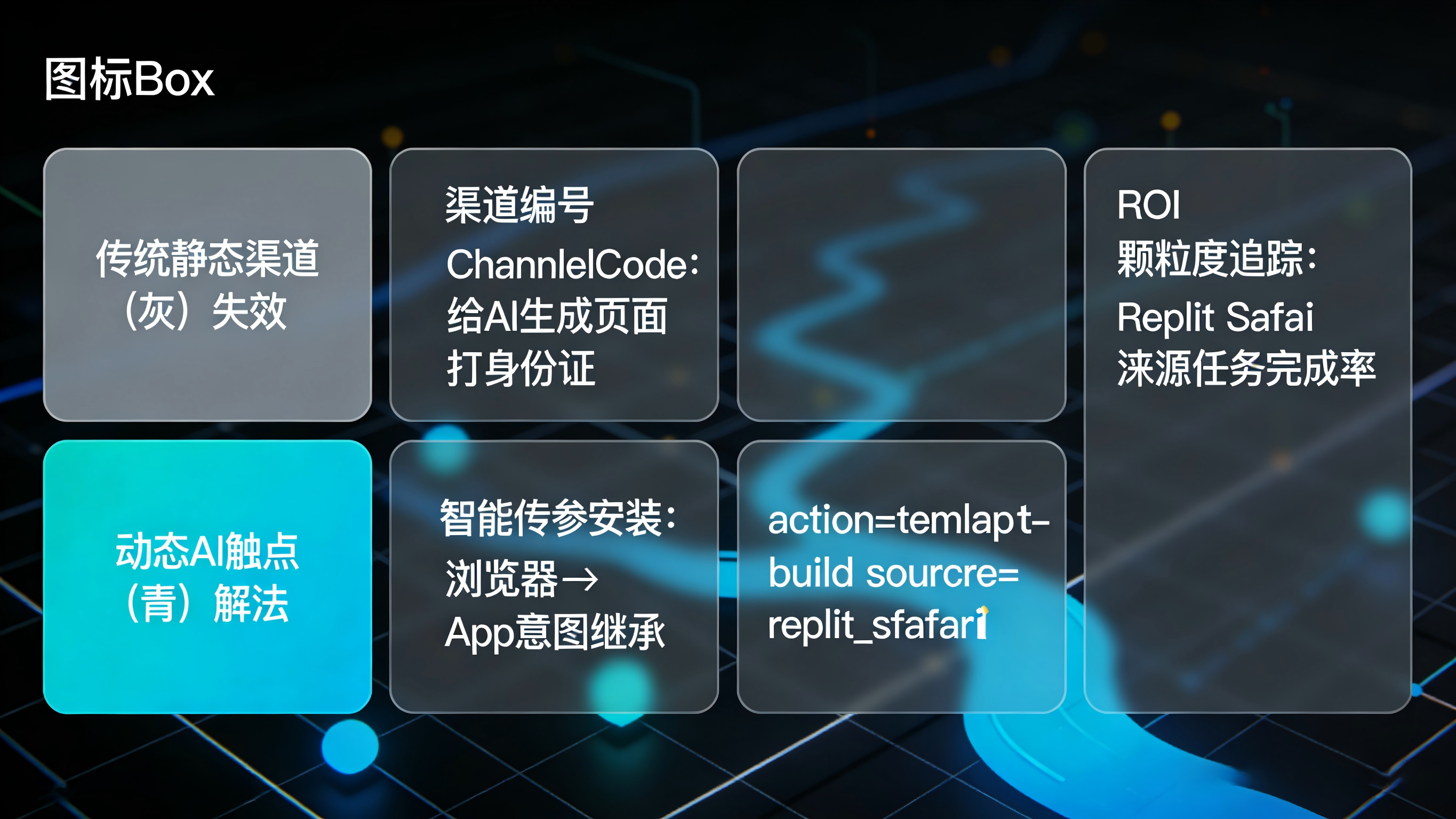 问题是,未来由 AI 生成的导流页面和微应用将成千上万,且随时生成、随时销毁。传统的静态渠道链接根本无法满足如此高频、动态的分发需求。