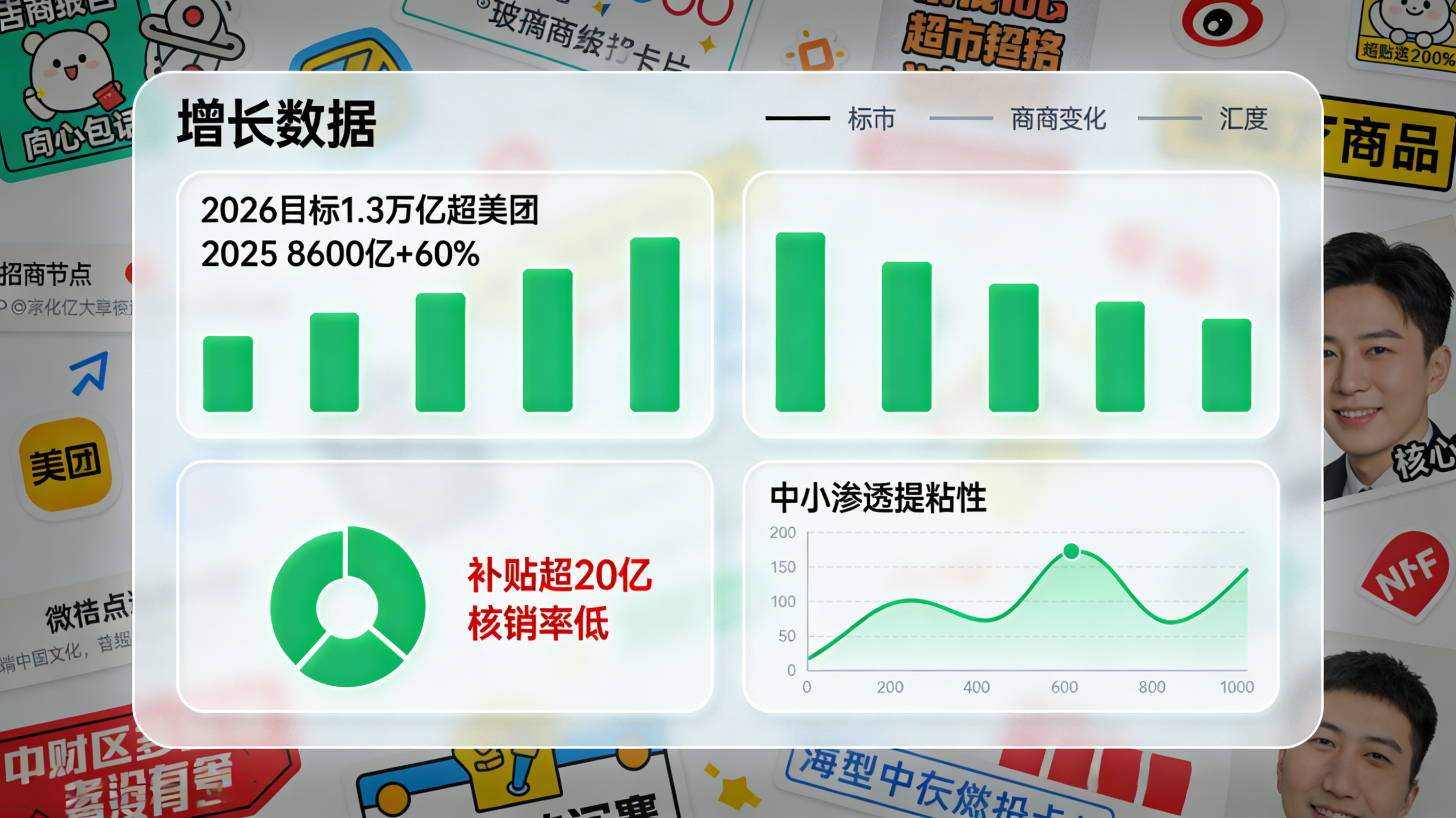 2025 GMV8600亿(美团到店<1.2万亿),补贴200亿+;核销率低,中小渗透提粘性/盈利。