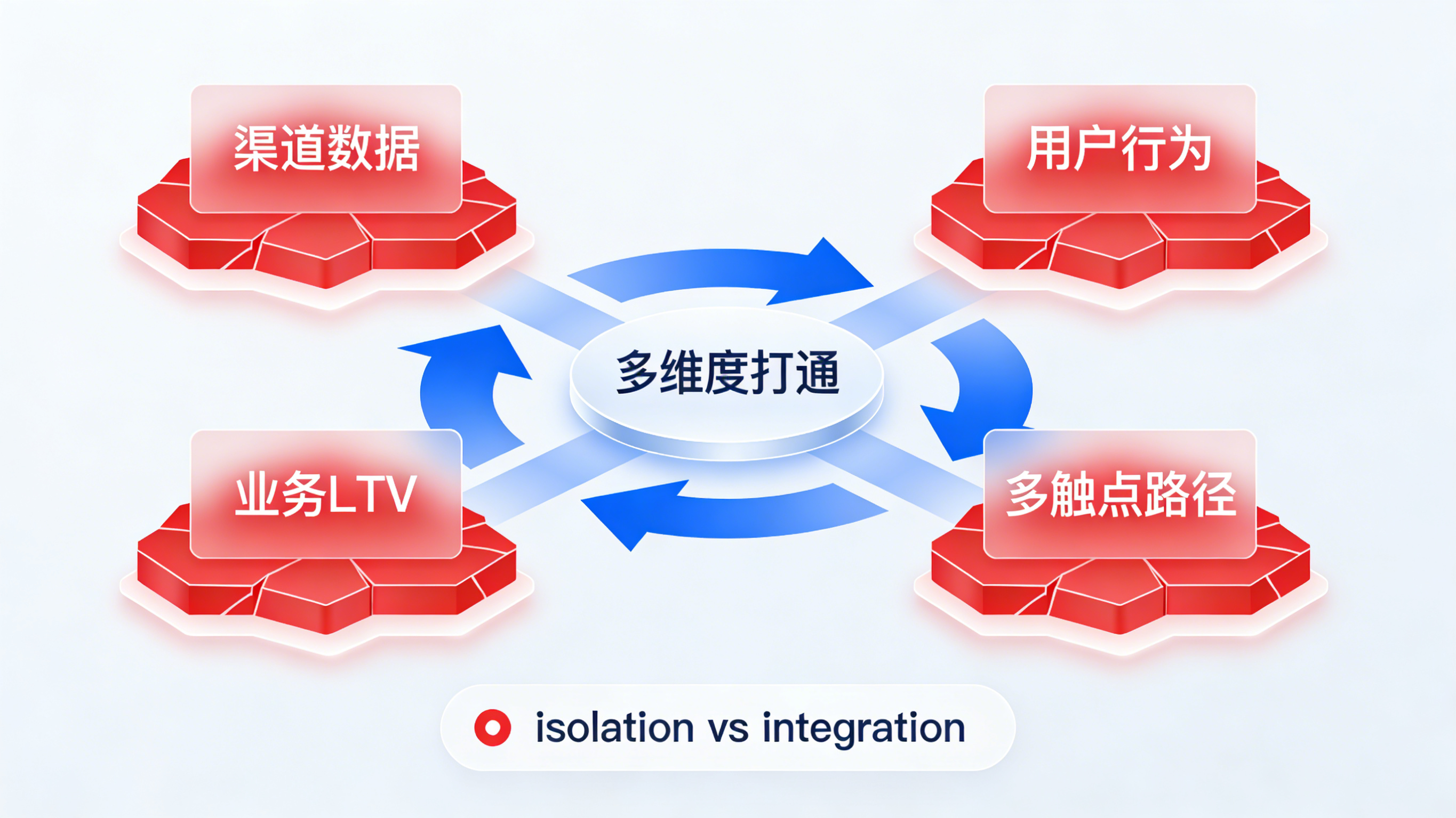 多渠道统计关注“渠道层的曝光与点击”,多触点归因关注“多触点如何分功劳”,而“App 增长黑盒破解”关注“多维度数据打通与真实路径识别”,是更高级的“数据融合”与“增长透明化”问题。在“多触点归因”与“多维度数据打通”中,这些“多维度链路”被用来“打通多平台数据”,并提升“真实路径识别率”。