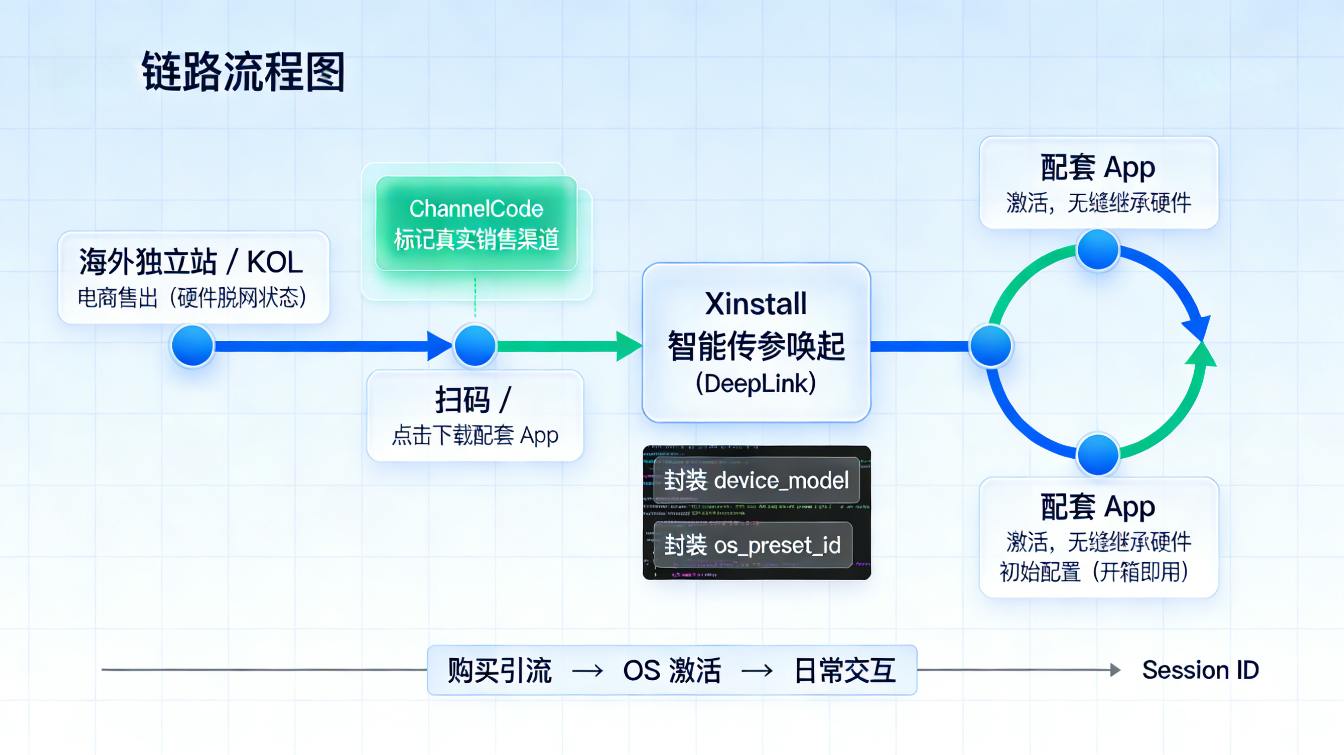 做法:Session ID串联“购买引流->App下载->OS激活->日常交互”。
