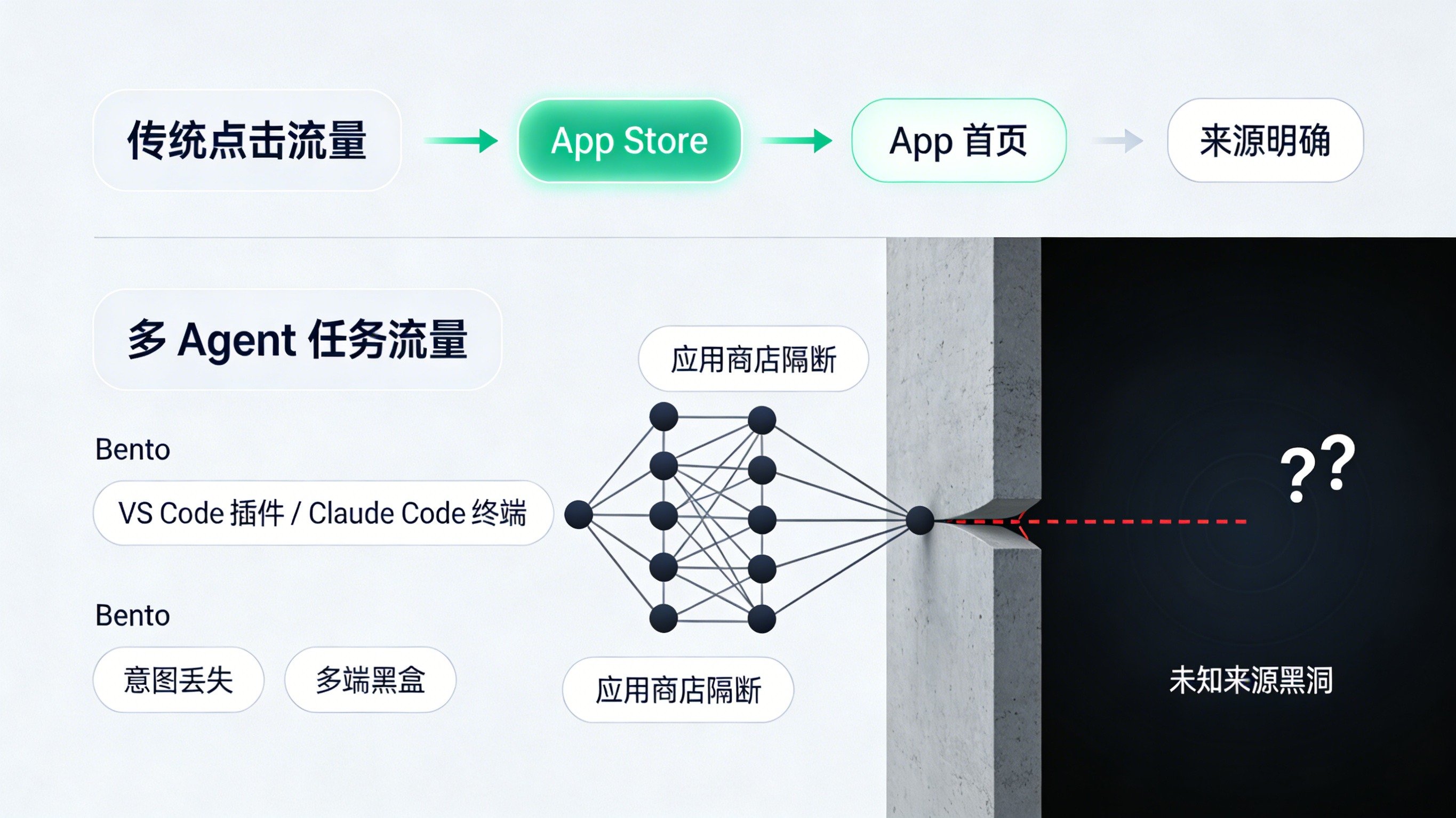 问题:当流量不仅来自信息流广告,还大量来自各类开源 Agent、IDE 插件或终端工具时,入口变得极度碎片化且难以区分。