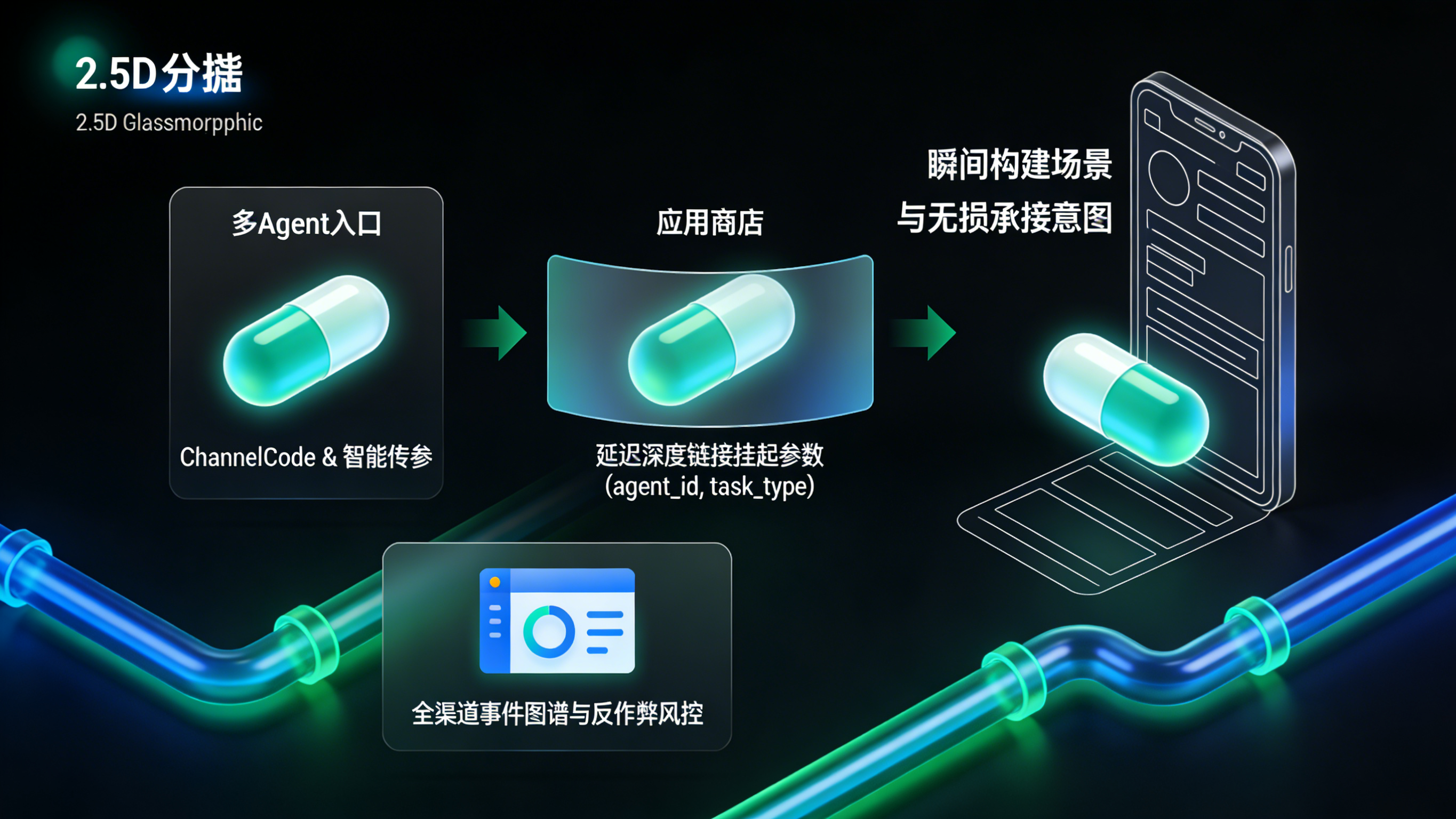 做法:引入智能传参安装机制。当 Agent 抛出操作链接时,利用延迟深度链接(Deferred Deep Linking)技术,将 agent_id、task_type(任务类型)和 scene(任务场景)等参数短暂挂起。当用户完成下载并首次启动 App 的毫秒间,SDK 迅速拉取这些被暂存的参数。