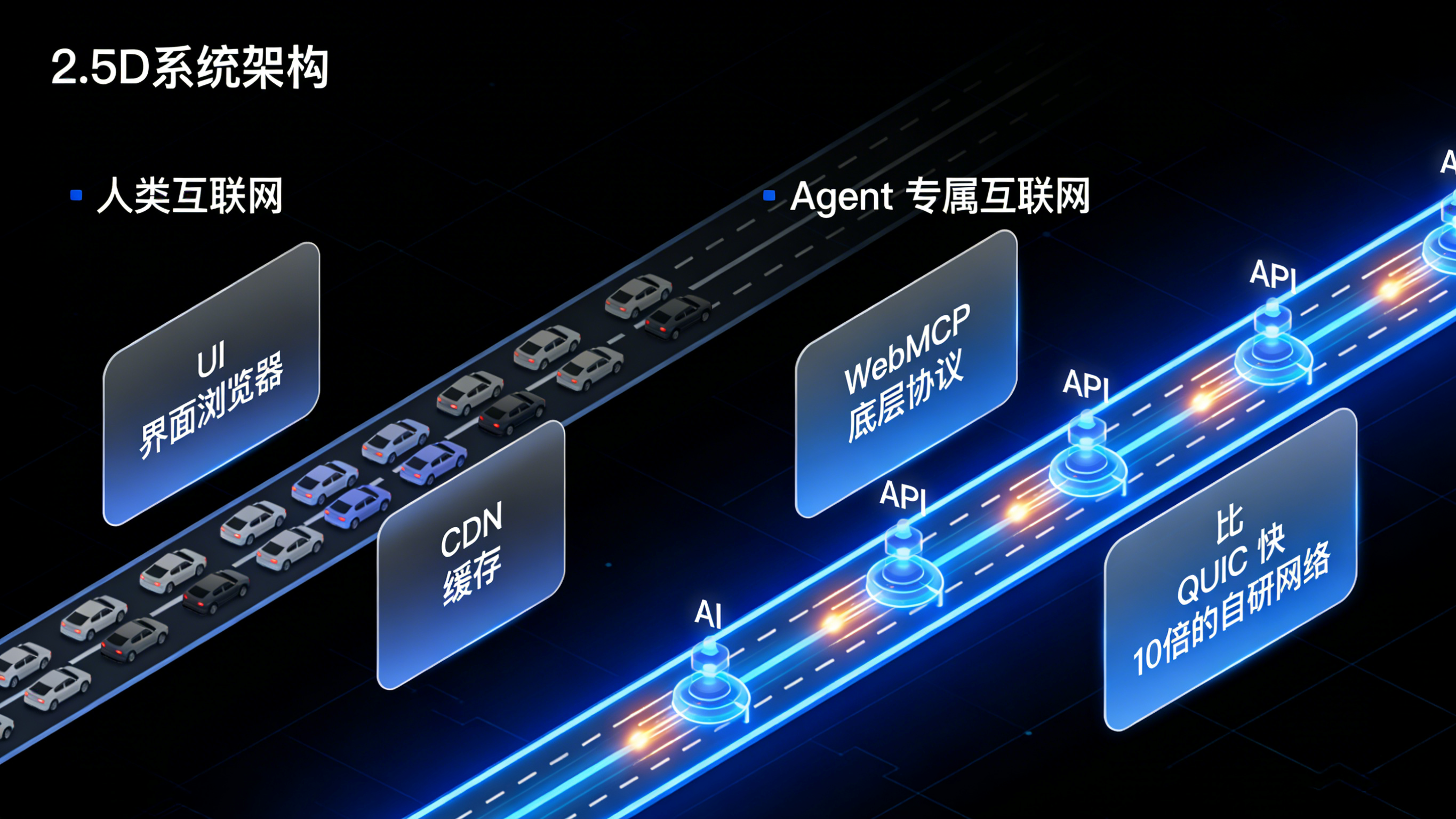 刘洪涛基于全球人口与算力增长趋势预测,未来全球将涌现出超过8000亿个Agent。这些Agent将彻底改变网络请求的形态。人类上网的特征是“浏览与停留”,一次性访问少量内容,高度依赖UI界面和内容缓存(CDN)。而Agent上网的本质是“干活与拿结果”。它们的操作具有极高频、短请求、高度并发的特点,且生成的内容与请求往往是完全个性化、不可缓存的。