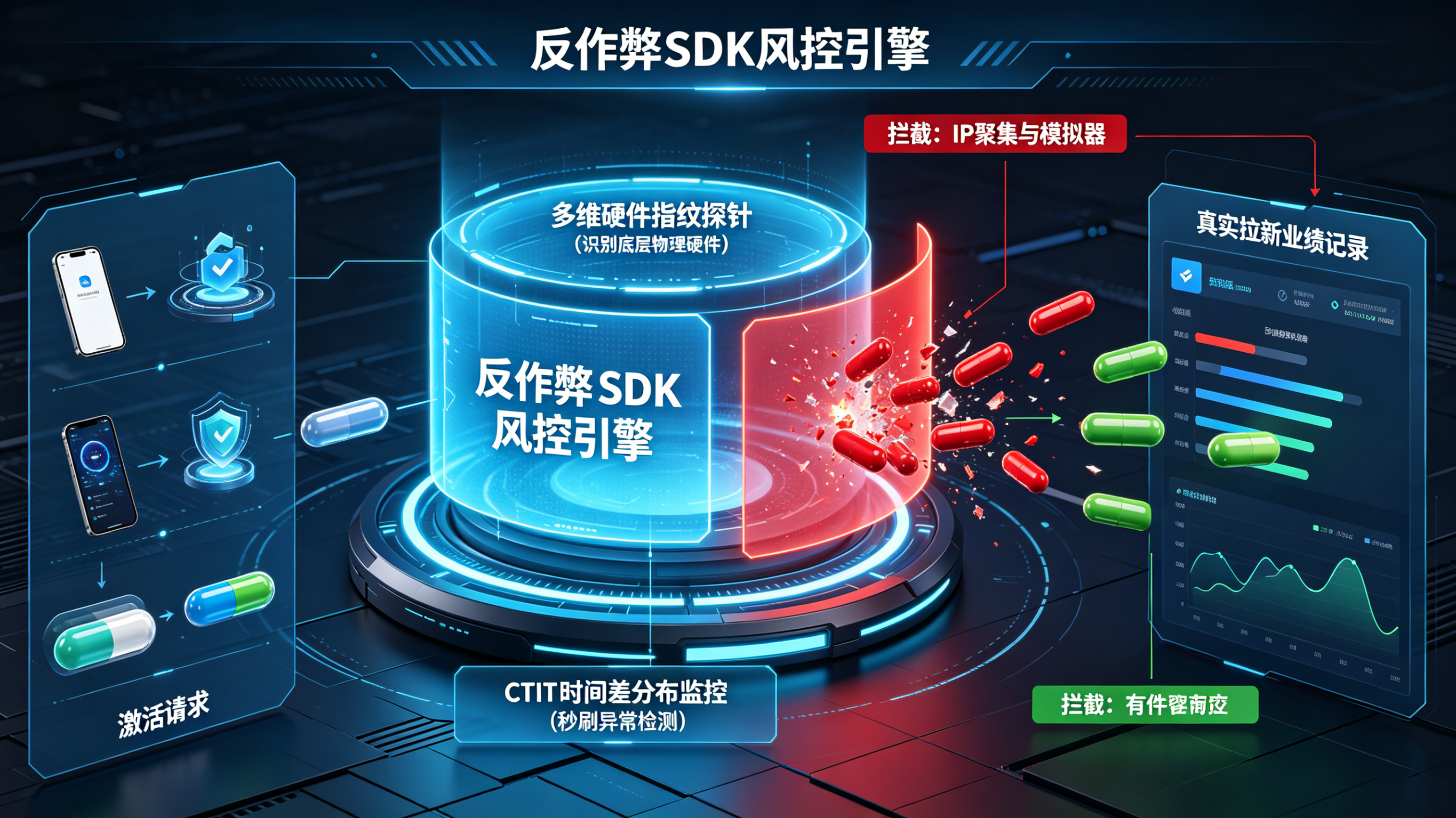 面对不断进化的刷量黑客,传统的“黑白名单”与“限制同一 IP 激活次数”已经完全失效。企业必须引入具备深度探测能力的防作弊 SDK,构建多维防御体系。