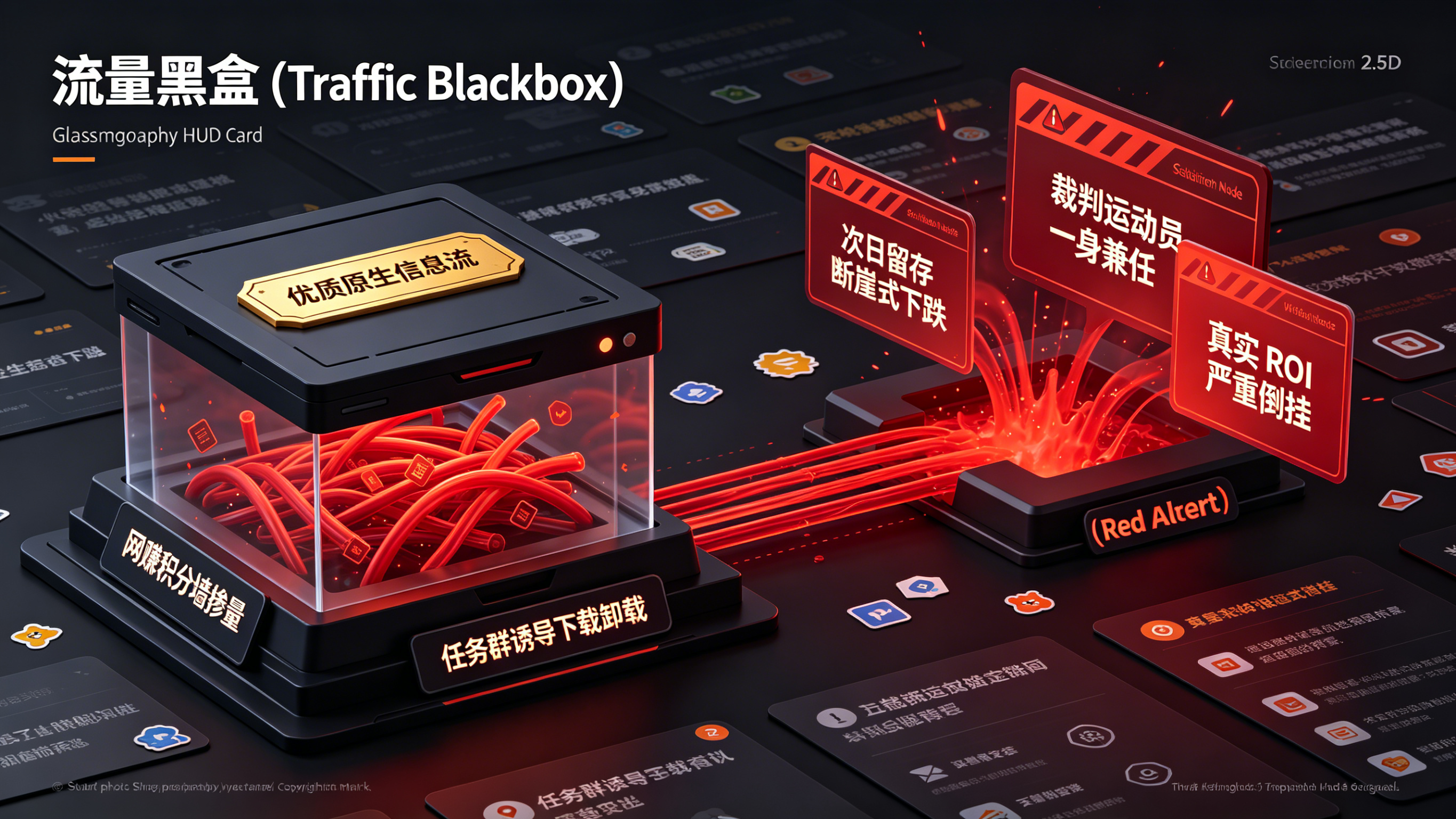 这是 [游戏广告联盟](F40 URL占位) 及各类中小 CPA 平台最常见的“割韭菜”手段。部分不规矩的联盟为了完成对赌 KPI,会将单价极低(可能仅需 0.5 元)的“网赚积分墙流量”甚至“任务悬赏群流量”,通过多层重定向包装成高单价(如 50 元)的“信息流原生优质流量”售卖给广告主。
