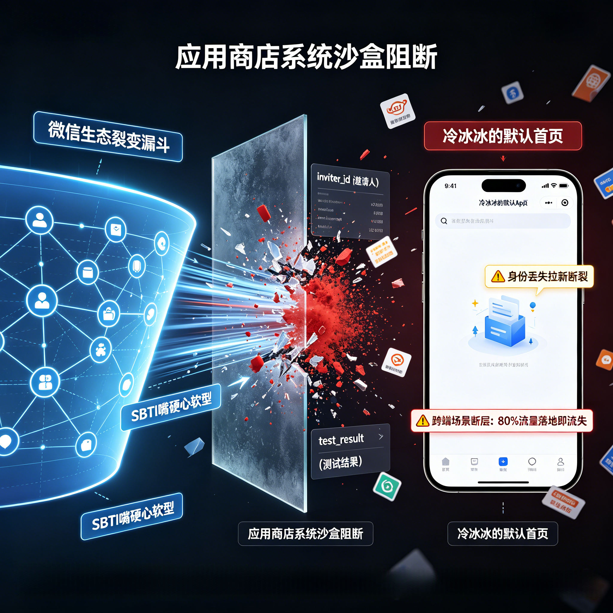 在 SBTI 这种典型的社交裂变场景中,最核心的冲突在于:H5 极度繁荣的社交生态,与 App 极度封闭的沙盒机制之间的矛盾。