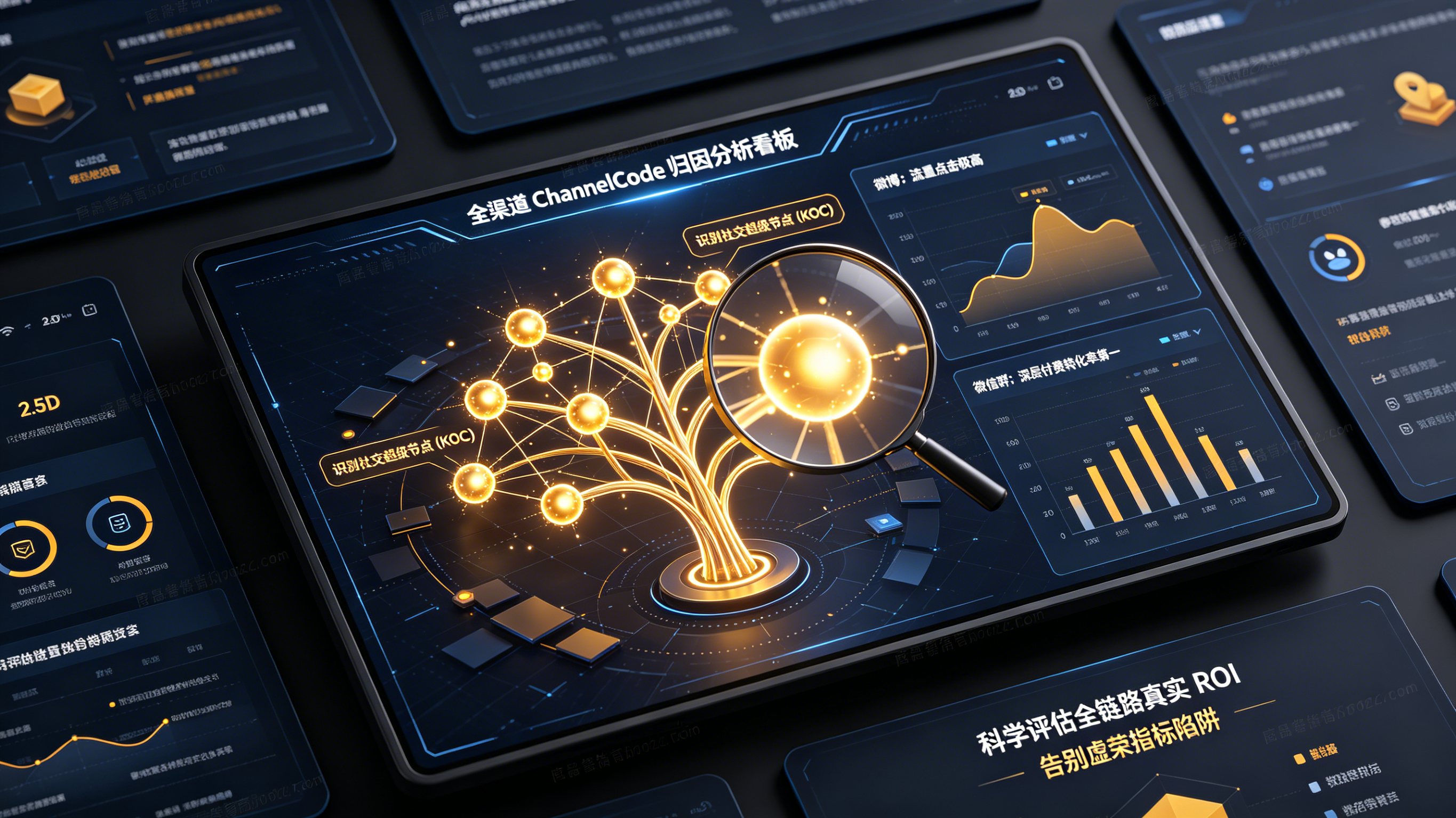 做法:摒弃粗放的渠道包打包方式。利用全渠道归因看板,为每一次分享、每一个社交平台生成带有专属渠道编号 ChannelCode 的动态链接。当用户通过该链接下载激活时,底层自动完成归因上报。