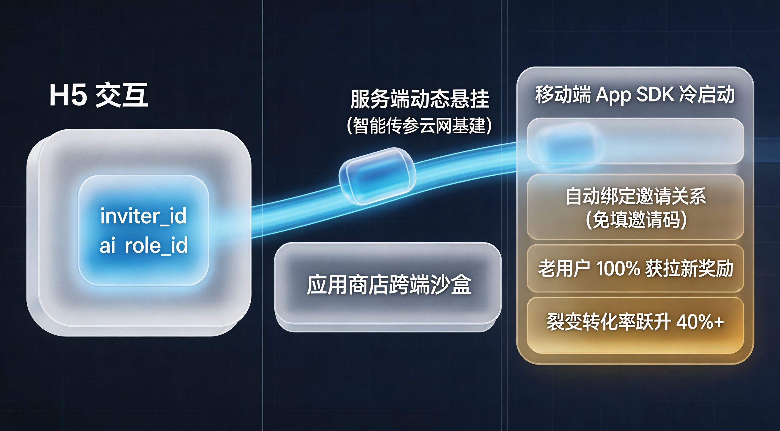 | 社交关系绑定 | 需用户强行记忆并手动输入邀请码 | 免填邀请码,底层自动抓取参数完成无感绑定 |