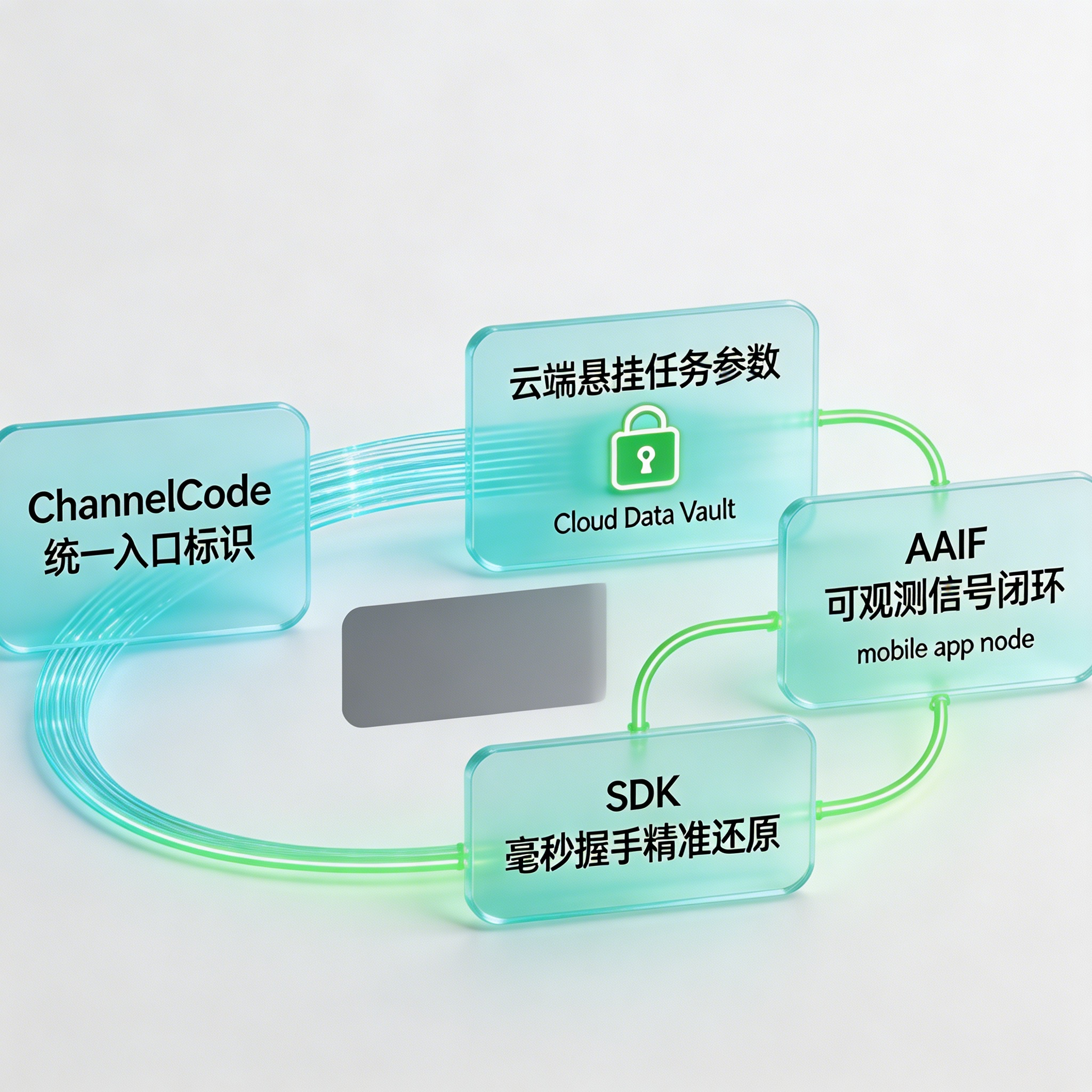 对应无状态请求,智能传参在H5点击瞬间悬挂任务参数(gRPC metadata、权限token)。下载后首启,SDK毫秒握手取回,实现免填绑定。好处:激活率从30%升70%,任务完成率翻倍。