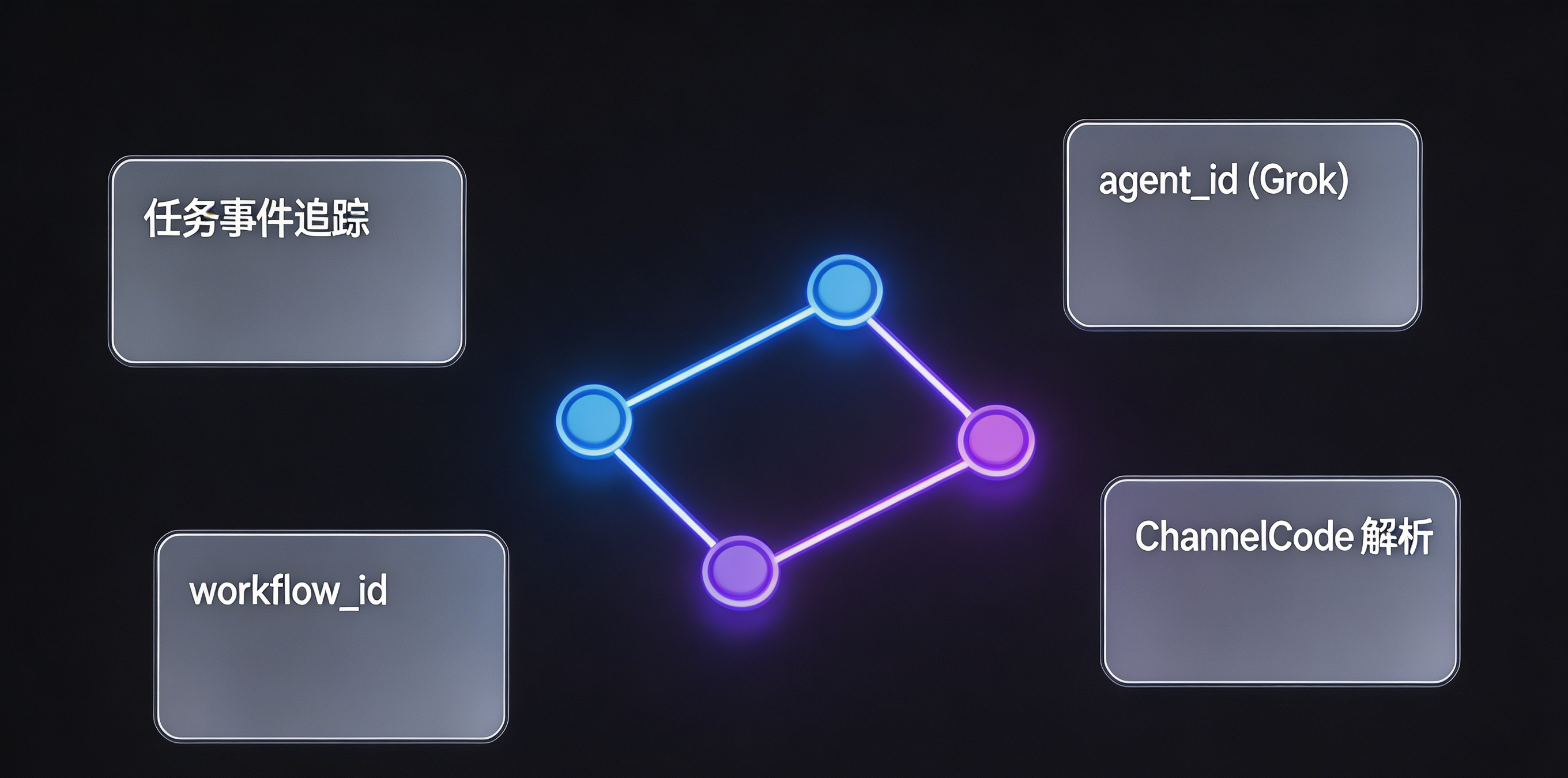 问题很简单:当流量来自 XChat、X 平台、Grok 调用或外部分享时,怎么知道用户到底从哪个入口进来的。做法是给每个入口配置统一的 ChannelCode,把不同来源的链接、按钮、群发和任务跳转收束到同一套标识体系里。这样一来,开发团队在做活动页、落地页和下载页时,就不再依赖模糊的来源文本,而是可以直接用结构化渠道码管理流量。