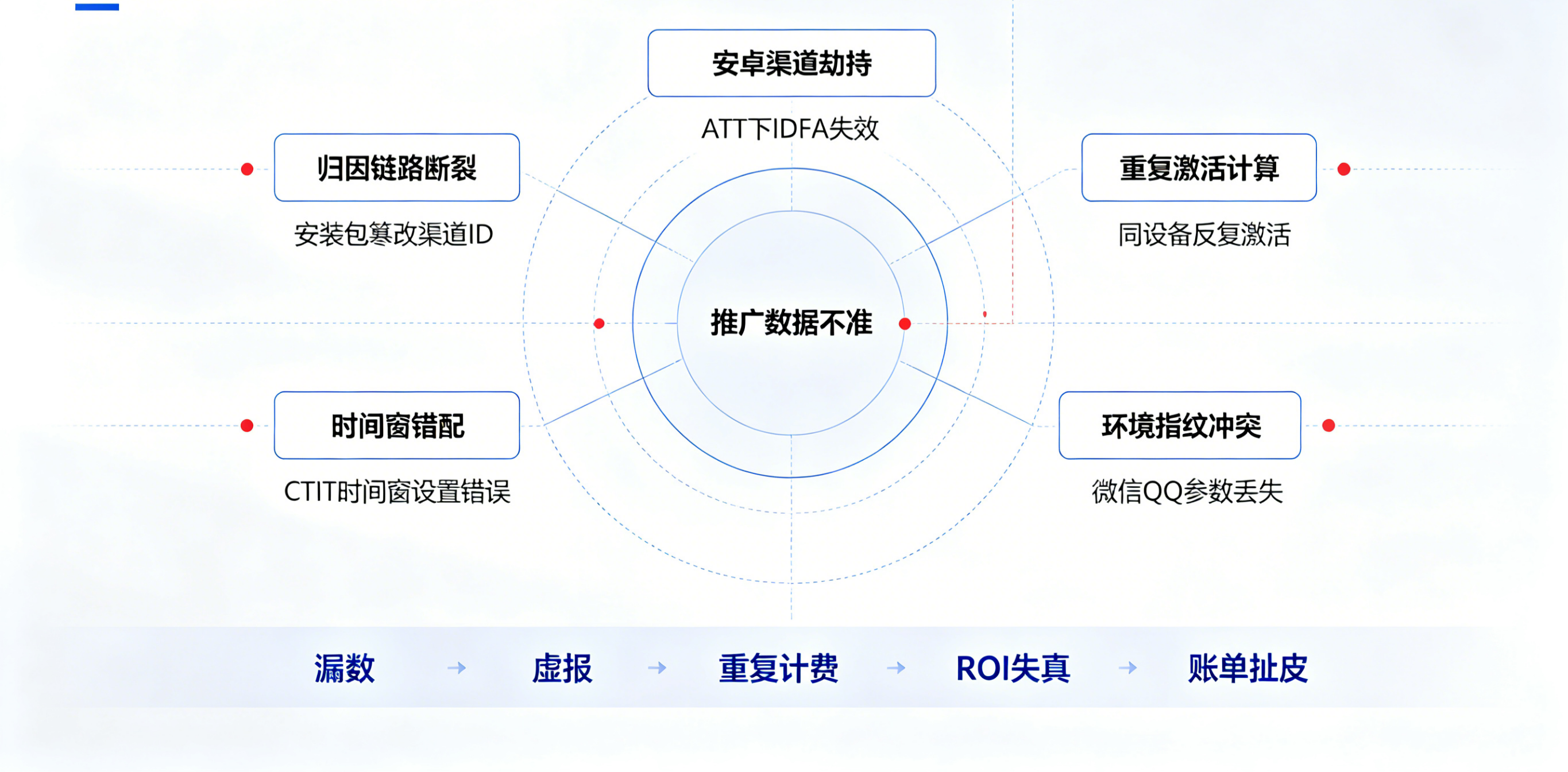 苹果ATT隐私框架导致IDFA获取率暴跌至30%以下。用户通过微信内置浏览器点击推广链接后,传统归因依赖IDFA匹配失败,激活数据沦为"自然新增",漏数率高达60%。