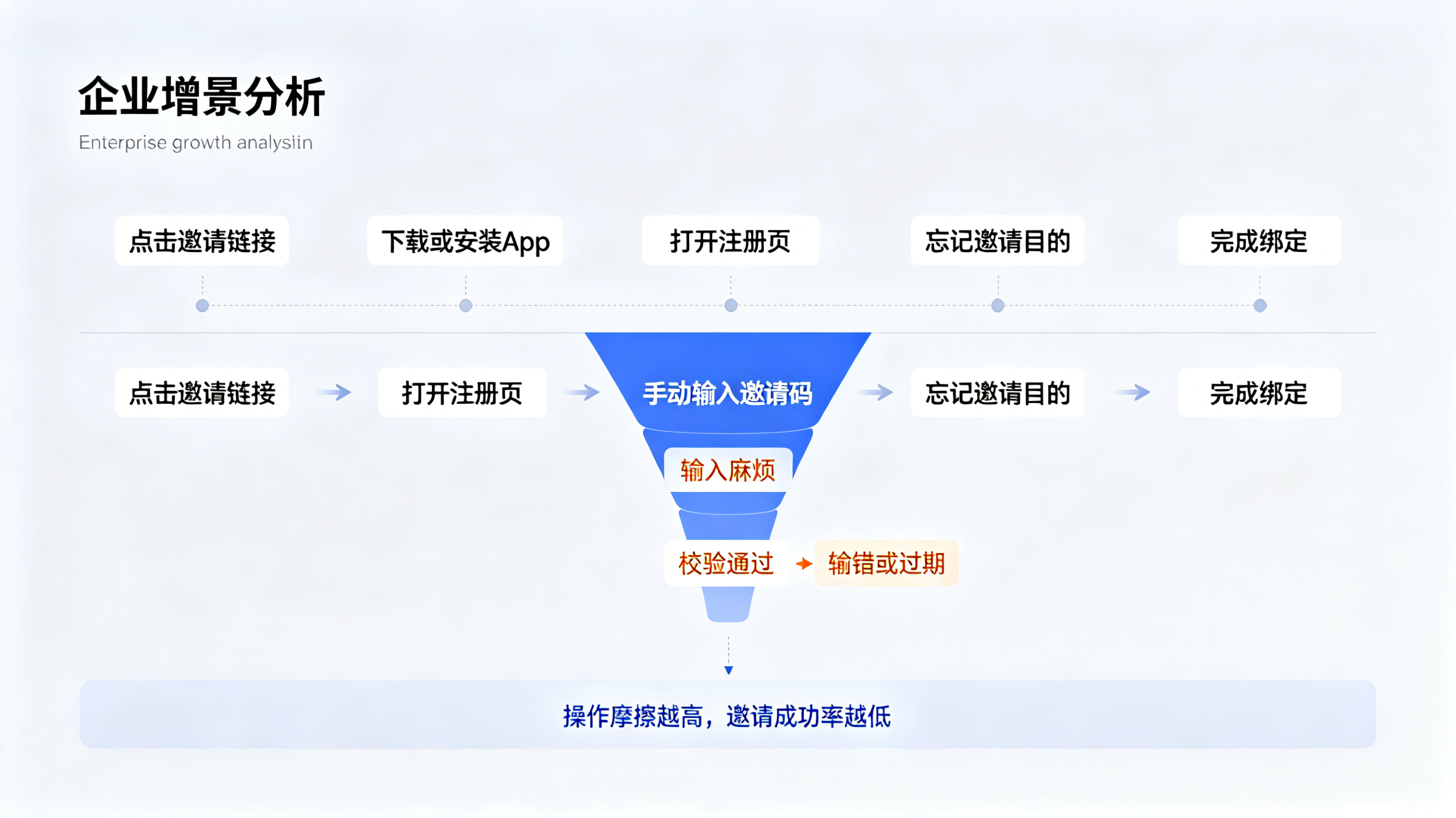 第一,用户手动输入环节流失率高达65%。繁琐的操作+输入错误导致大量潜在用户中途放弃。第二,邀请码过期或格式错误,用户反复折腾后选择离开。第三,缺乏场景记忆,用户忘记点击链接时的邀请目的,激活后找不到对应的奖励或任务。