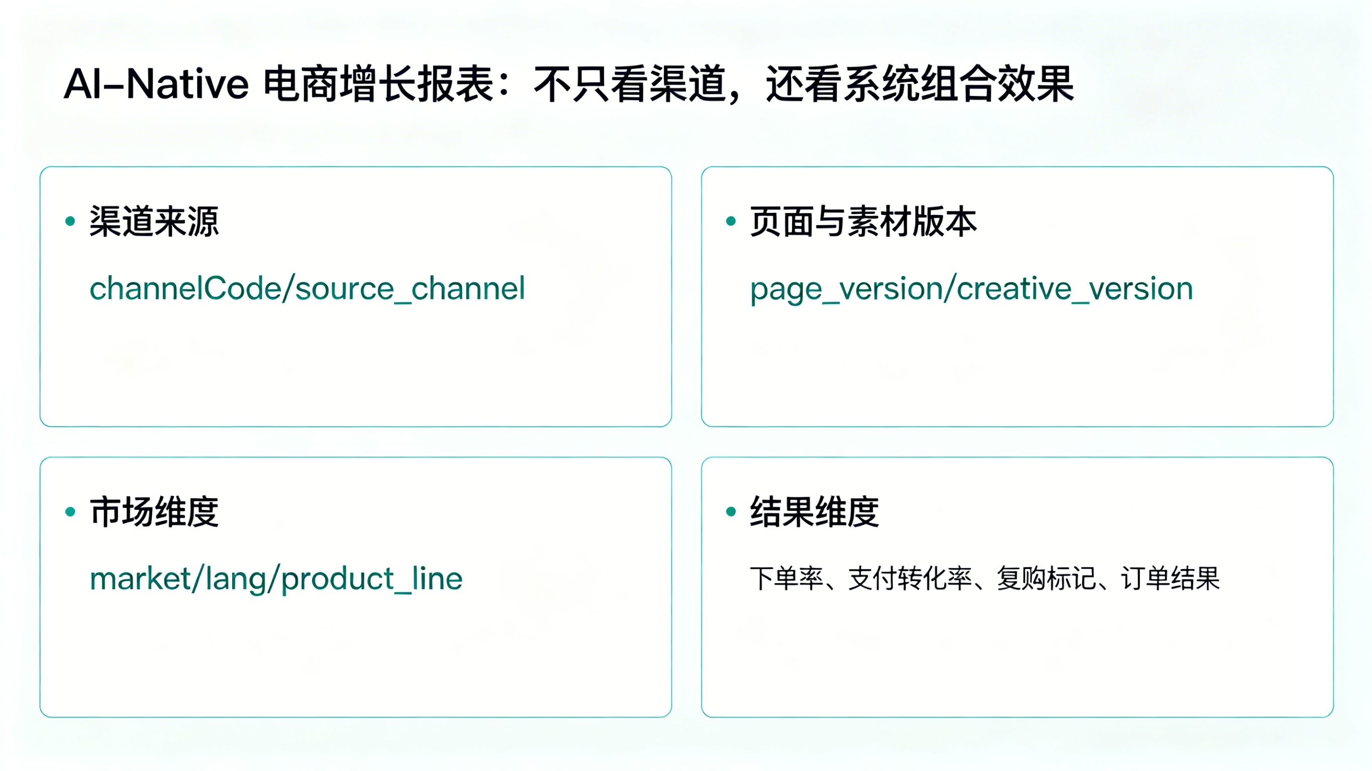 带来的好处是,团队不只是知道“流量来自 Meta 或 Google”,而是知道“哪一个市场版本、哪一个站点版本、哪一类 AI 生成链路”真正带来了有效订单。