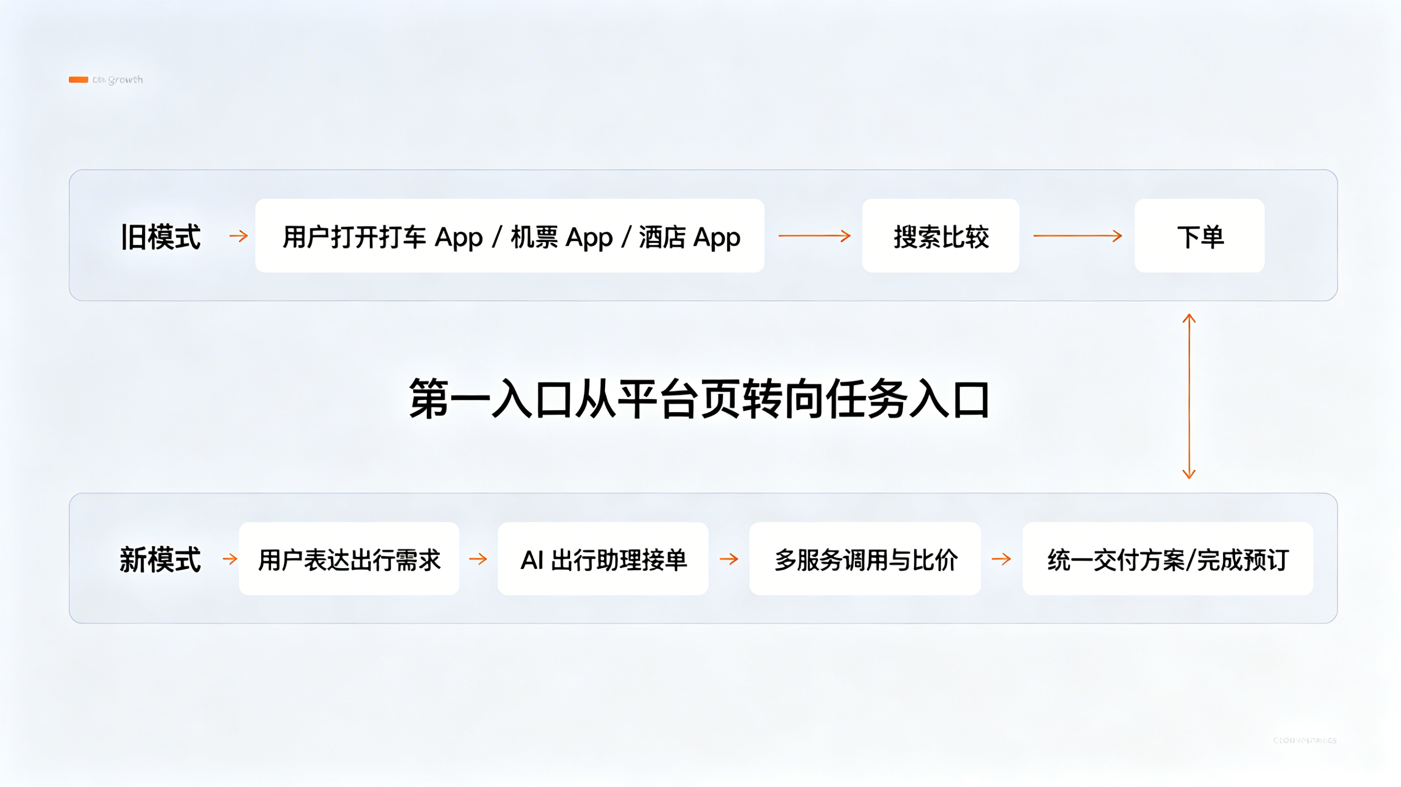 这件事对普通用户的意义,是以后也许不用在打车、机票、酒店、日历和差旅审批之间来回切换;但对 App 增长团队来说,真正的新问题在于,出行流量将不再只是平台竞争,而会变成“代理入口竞争”。一旦用户把出行需求先交给 AI 助理,再由 AI 去调用多个服务,传统的获客、渠道统计和转化归因方法都会开始失真。