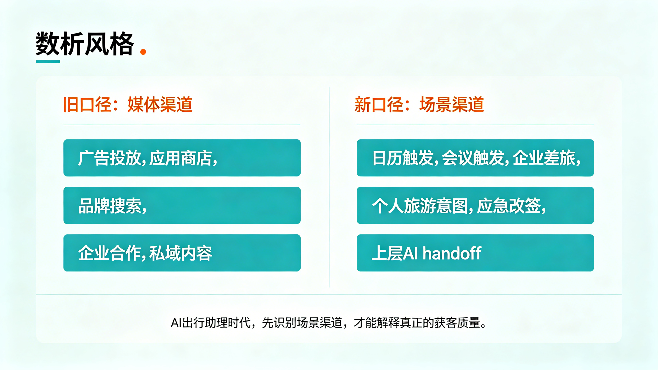 这也是为什么“渠道统计”在 AI 出行行业不再只是 marketing 部门的事,而会变成产品、运营和数据团队共同关心的核心能力。