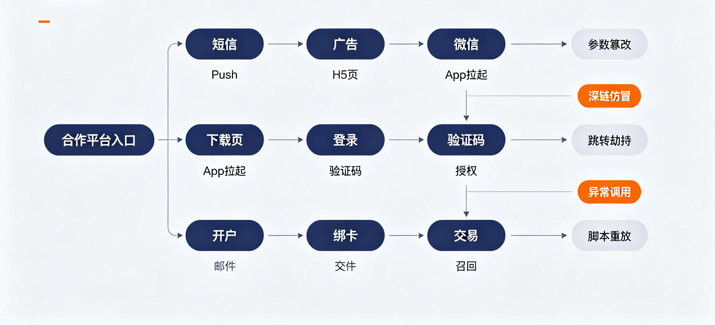 尤其在今天,很多金融机构的用户旅程已经不局限在一个 App 里。用户可能从短信、推送、广告、微信、邮件、合作平台、扫码入口、下载页、H5 页面一路进入交易体系。入口越多,攻击面就越多;流程越长,可被操纵的节点也越多。
