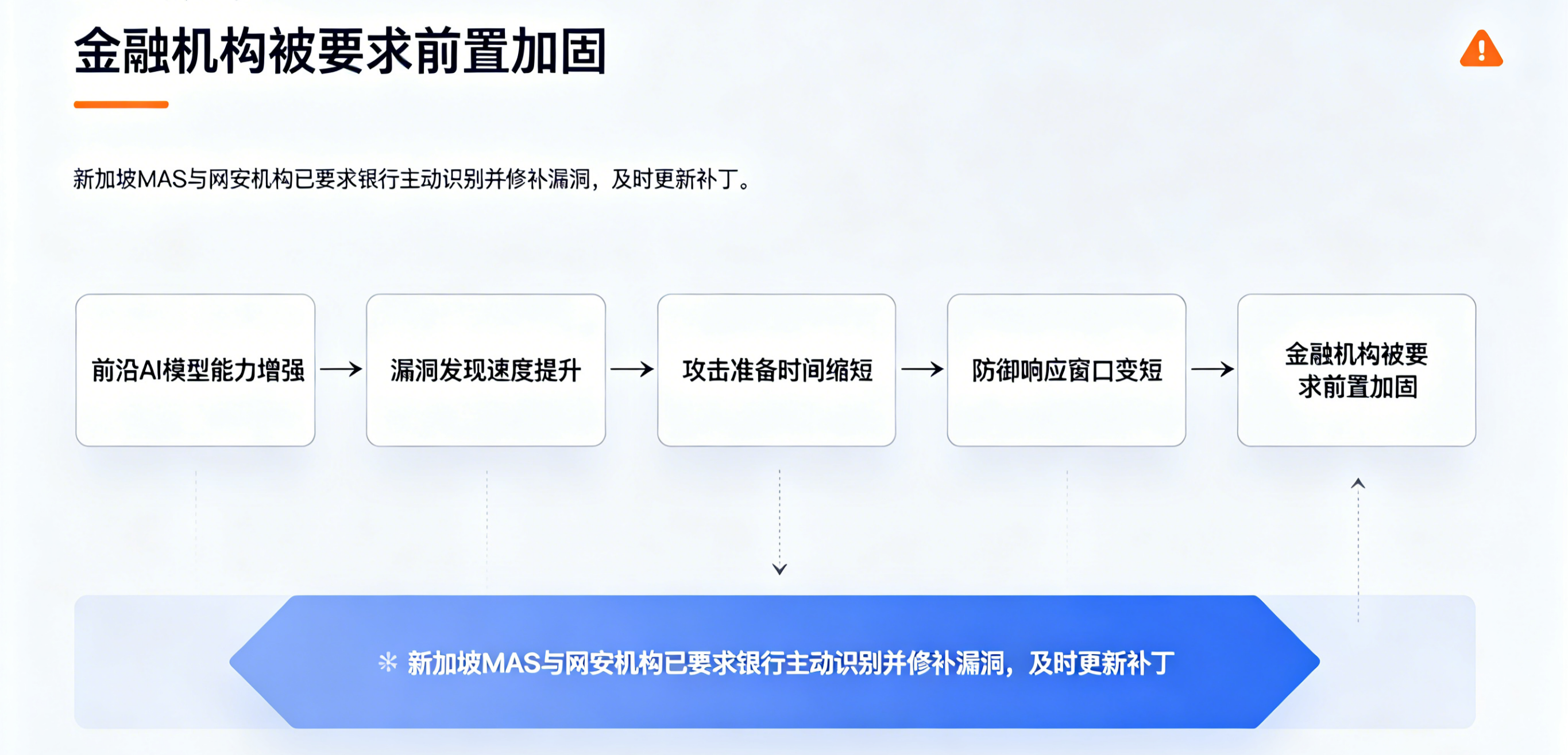 材料显示,新加坡金融管理局在回应相关询问时指出,AI 的进步将加速 IT 系统中软件漏洞的发现与利用,因此金融机构需要加倍努力强化安全防线,主动识别并修补漏洞,并及时完成安全补丁更新。