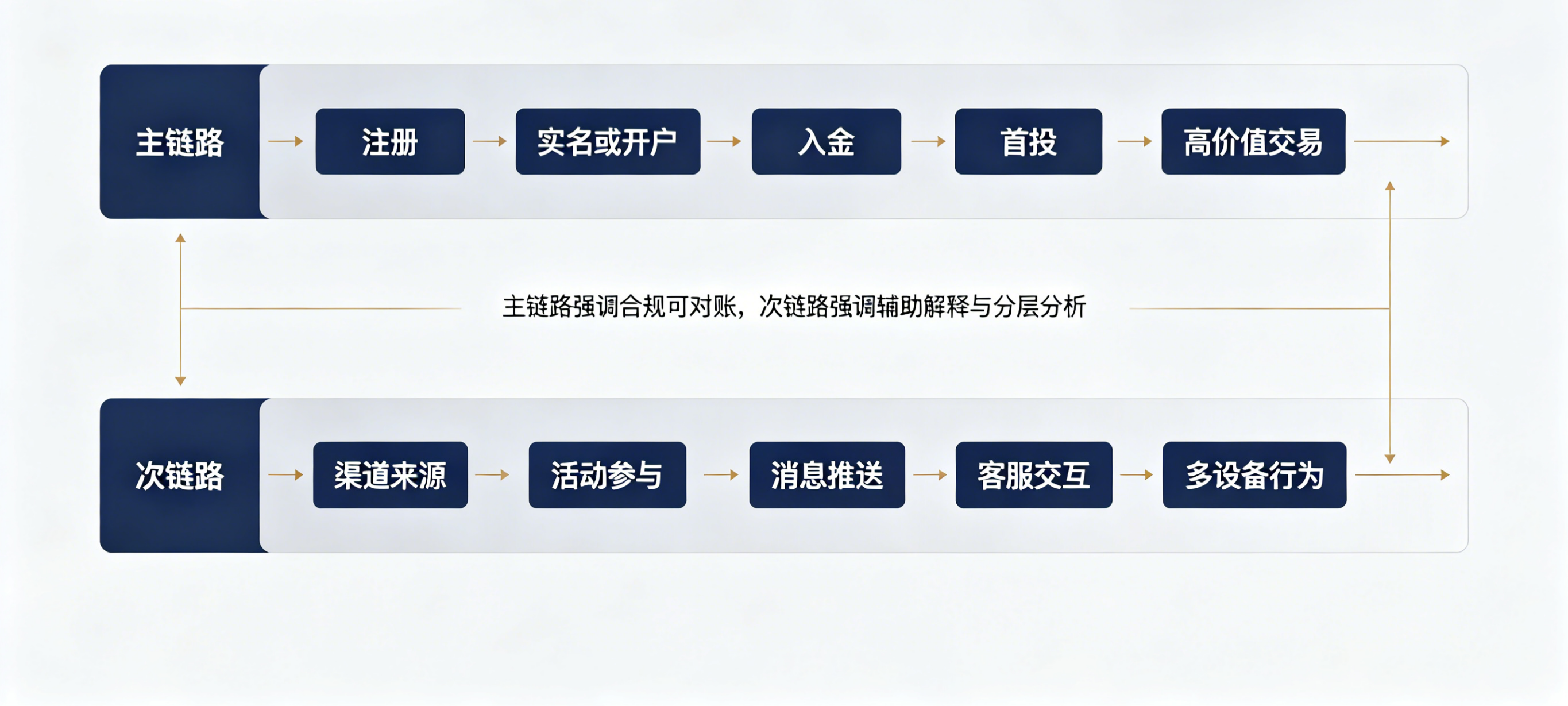 主链路追求“合规边界内尽可能完整且可对账”,次链路追求“在不增加隐私风险的前提下,提供可分层、可对比的统计维度”。
