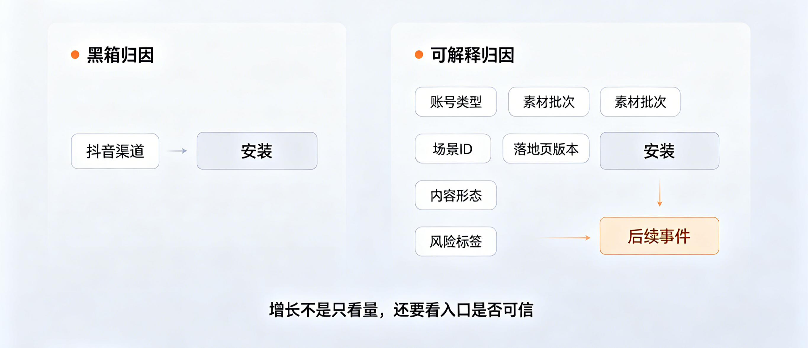 所以,抖音整治 AI 不当内容,对增长团队的真正冲击并不是“又一个平台规则变严了”,而是一个更残酷的现实:以后流量不仅要多,还要真;不仅要能转化,还要能解释;不仅要追踪结果,还要能说明这条结果是不是建立在可信入口之上。只要这条逻辑成立,【数据归因】就不再是投放优化的附属模块,而是决定团队还能不能继续稳定做增长的底层系统。