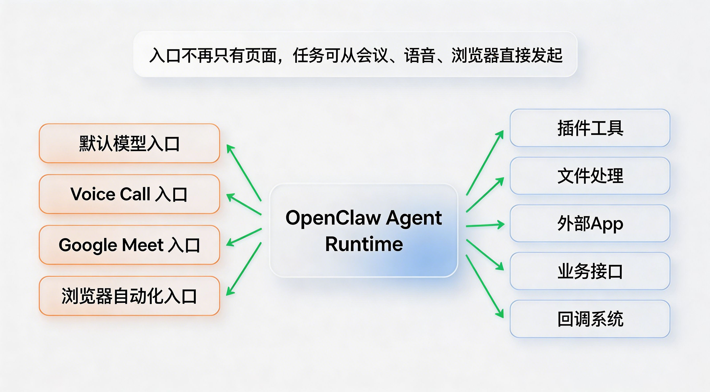 过去 App 的增长逻辑大多围绕显性入口展开。用户从搜索、广告、社媒、私域或者推荐位进来,点链接、安装、打开、转化,链路虽然长,但主体相对清晰。可到了 OpenClaw 这种 Agent 平台里,入口开始变得更隐蔽。用户可能不是自己点进 App,而是在会议里提出一个问题、在电话里触发一个需求、在浏览器任务里发起一个动作,随后由默认模型接管,再串起工具调用和结果回传。