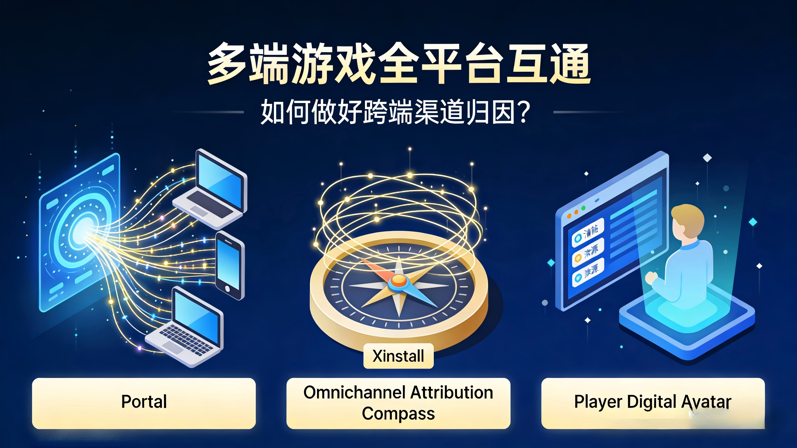 不是,但密切相关。多端互通是产品功能,解决的是"游戏进度可以跨设备同步";全链路归因是数据能力,解决的是"这个用户从哪里来,在哪里产生了价值"。两者需要协同设计——如果账号系统做了互通,但归因系统还是按设备隔离统计,增长团队得到的依然是一张碎片化的报表。