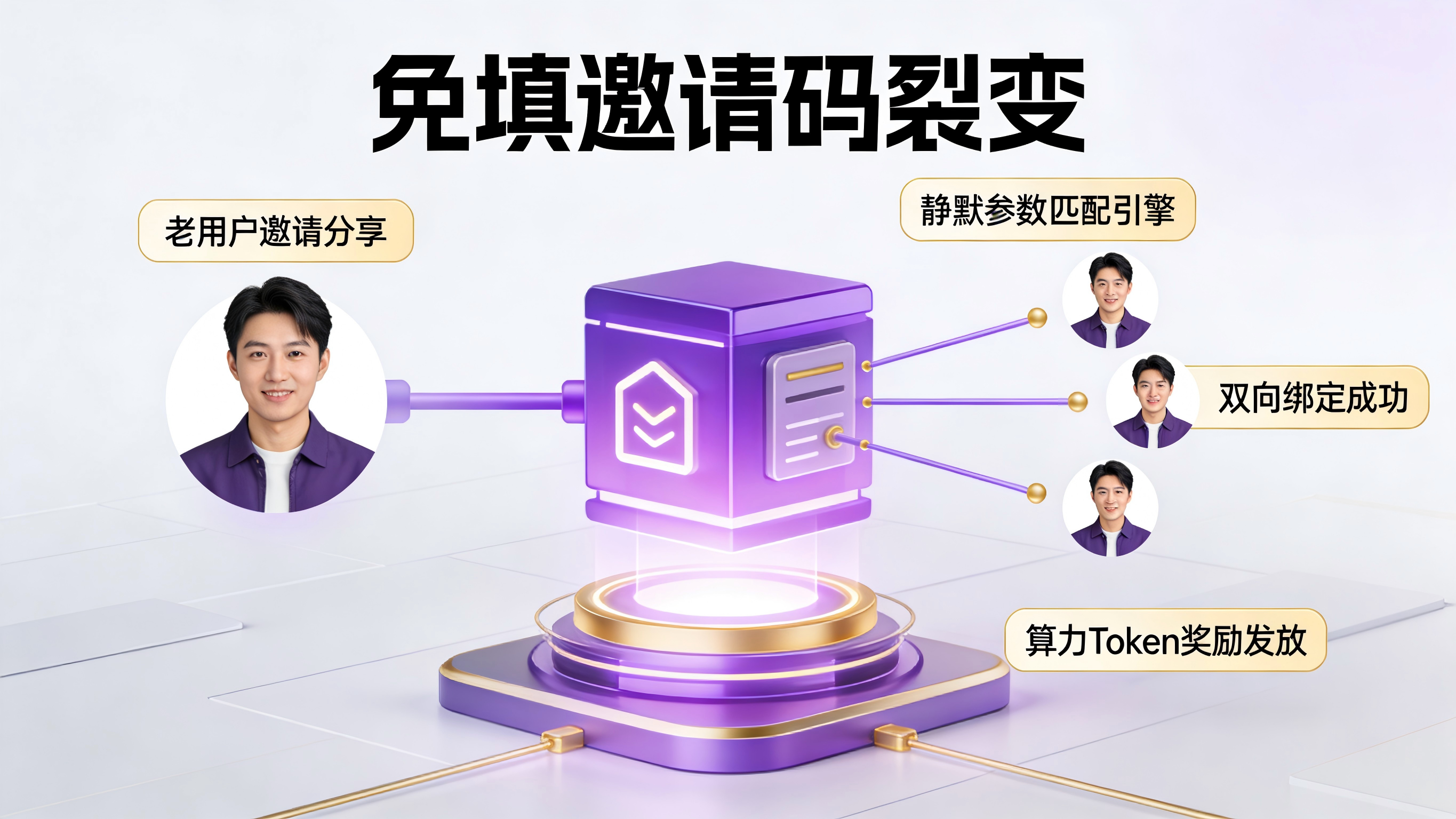 对于算力极其昂贵的视频生成类 App 来说,最好的拉新手段往往是“邀请好友送算力/Token”。然而,传统要求用户复制一串长长的字母验证码并在注册时填写的做法,会导致至少50%的折损。