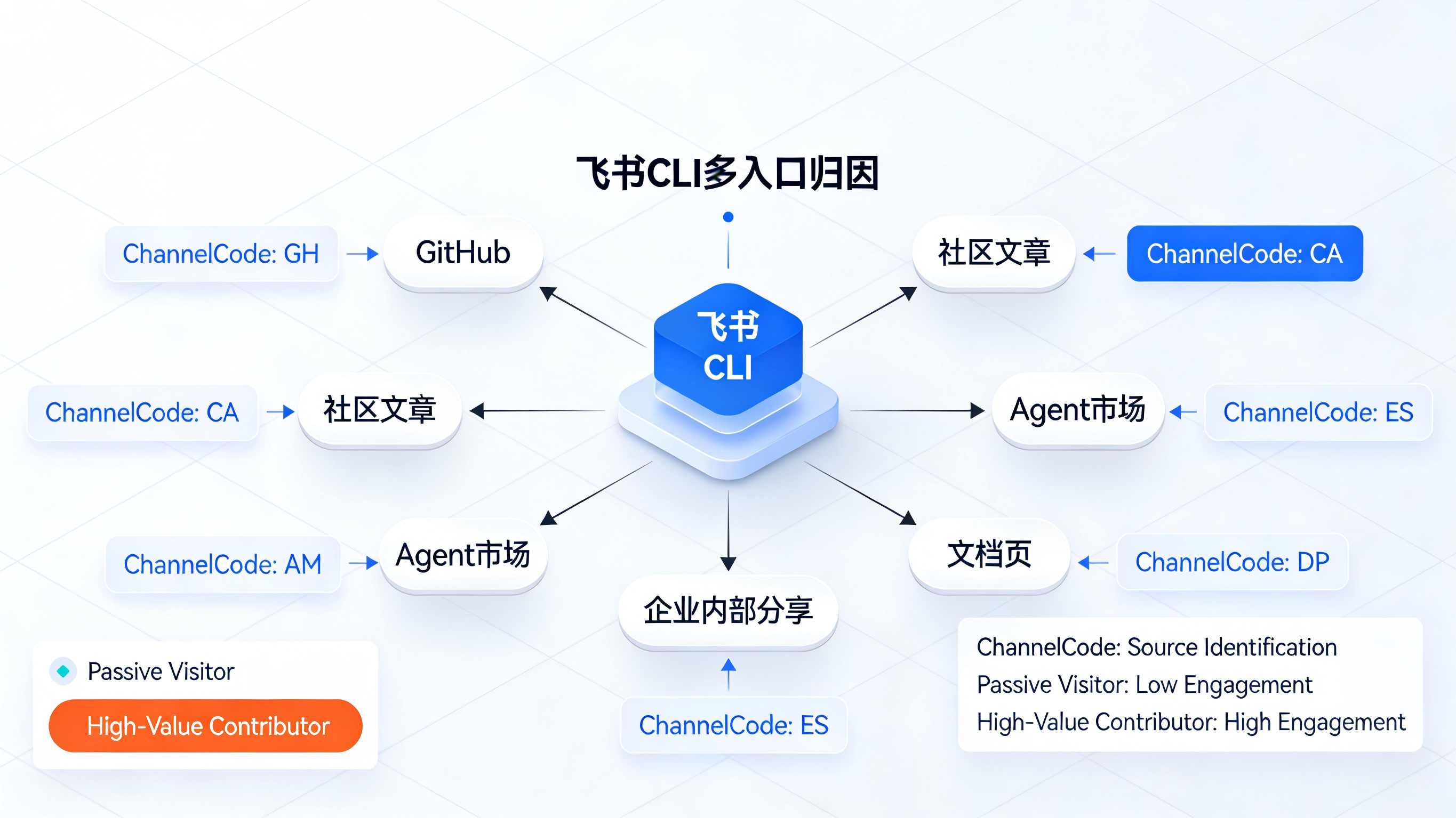 开源产品的第一个难点,不是用户会不会下载,而是用户从哪里来、为什么来、来了以后怎么继续留在生态里。飞书 CLI 这种工具,既可能被开发者在 GitHub 上发现,也可能被 AI Agent 社区、企业内部自动化团队,或者内容传播带来的流量触达,但这些入口的质量差异很大。