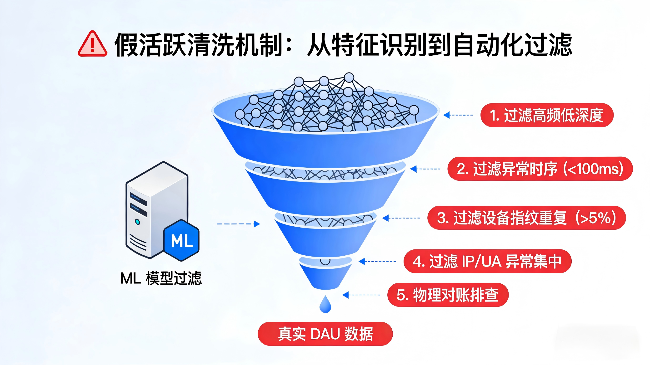 DAU = 当日独立用户数,但定义模糊导致报表虚胖。