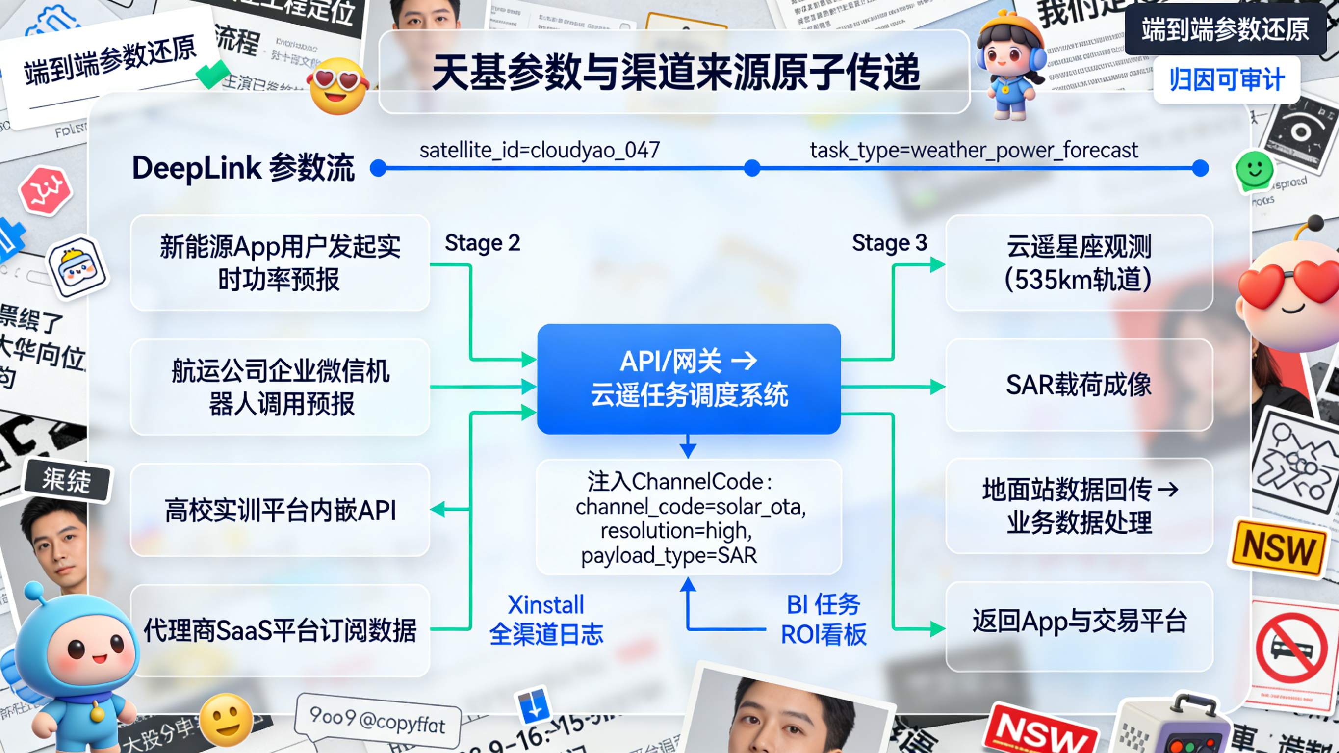 36氪独家消息,天津云遥宇航科技有限公司近日完成B+轮战略融资,融资金额超过5亿元人民币,创下国内商业气象卫星领域新高。本轮由天津港保税区基金、粤开资本等领投,老股东元航资本、梅花创投跟投,多家上市公司参与。当卫星数据从天基观测直达新能源功率预报与全球航运,普通用户惊叹于“20分钟高精度气象服务”的黑科技时,新能源App开发者与电力交易平台的增长团队却直面一个隐秘危机:海量卫星任务调用背后,谁能精准还原发起渠道、任务意图,并计算真实ROI?