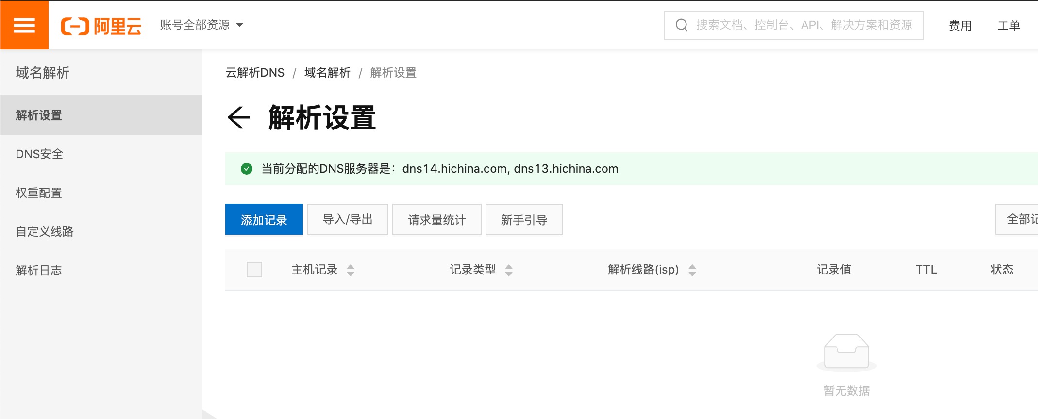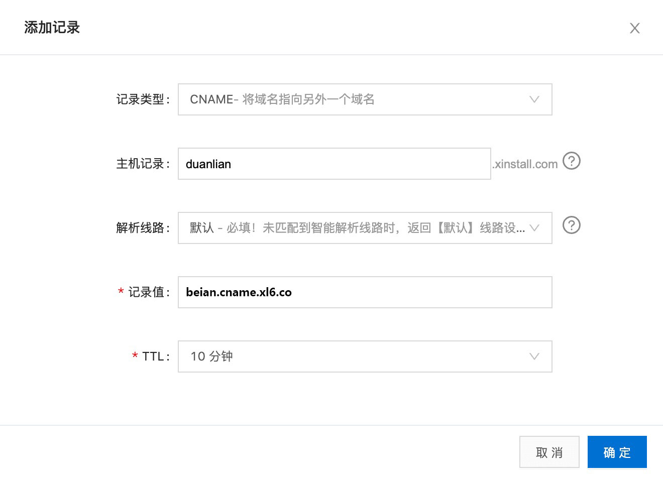 3.单击【添加记录】,填写以下记录信息。如下图所示