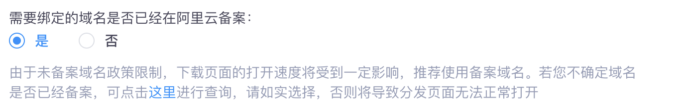 2.选择是否阿里云备案,这里需要注意的是,只有在阿里云中完成备案的域名才能够选是。