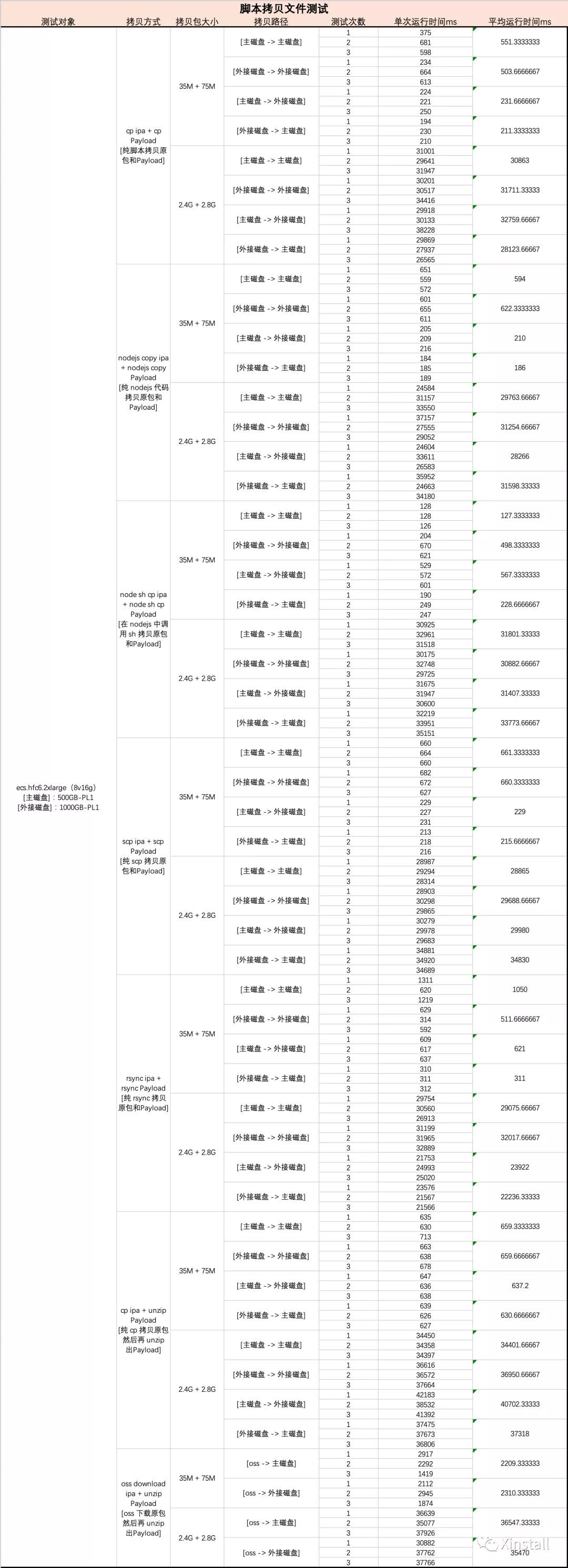 1. 各种方式对包的操作均与磁盘吞吐量有紧密关系,但目前不同方式之间的拷贝速度差异不大(除了非拷贝操作:unzip 和 oss download)