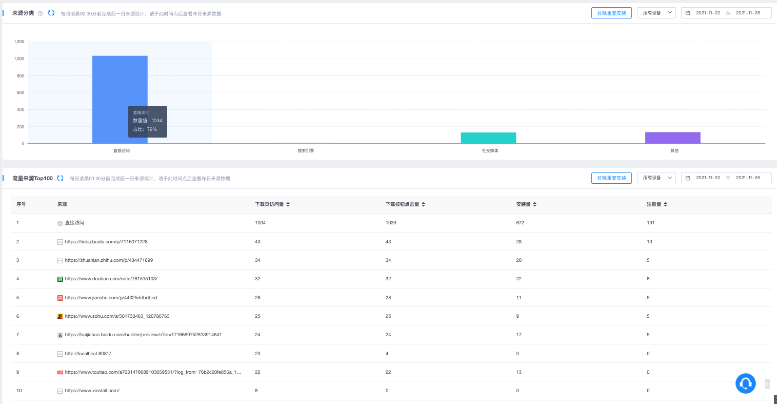 而Xinstall的功能远远不之于此,其中还能统计App渠道分享来源,能够从上万个渠道中,对App下载来源进行统计和业绩归属,同时支持防刷和数据实时报表显示。