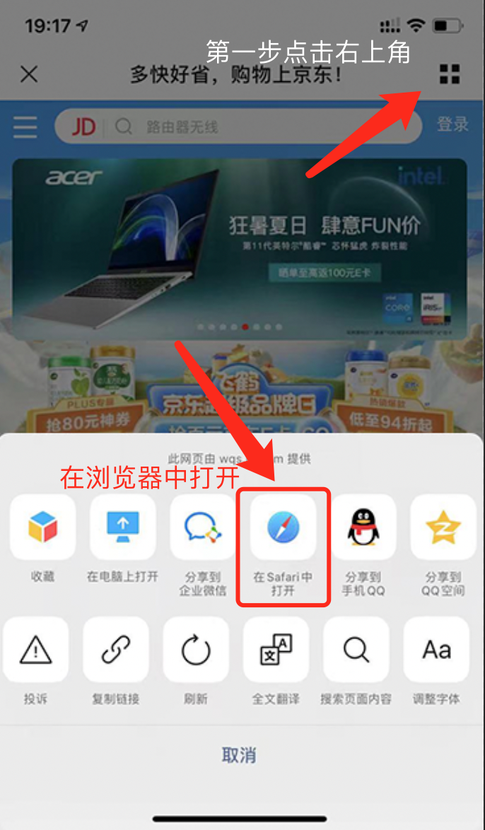 点击继续访问网站,会从微信内跳转到jd.com页面,这之后需要该App进行下载,我们点击下载App后,弹出下载落地页,这时候点击下载按钮是无法下载的,也无法跳转到应用商店进行下载。